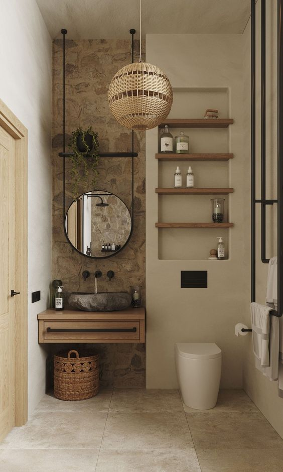 Dacă ești adeptul materialelor naturale, precum lemnul, piatra, atunci o baie în stil rustic ți se va potrivi. Alege design-ul băilor de la fermele americane, cu faianță albă, clasică, cu chit negru, obiecte sanitare albe și gresie mozaic și vei obține stilul rustic.