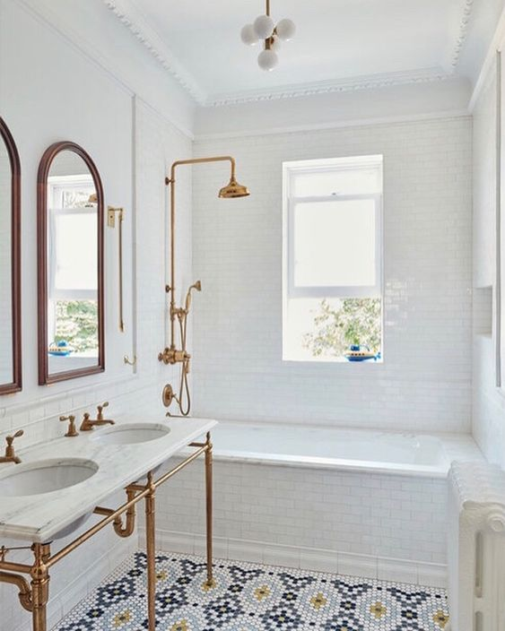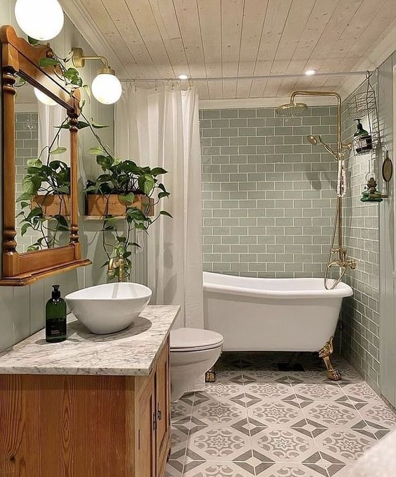 Băile vintage te ”aruncă” înapoi în timp, dar te vei simți super relaxat într-o așa încăpere. Le este specific nuanțele calde, lemnul, mobilierul patinat, care dă un aspect de vechi. În contrast, dar foarte bine se vor potrivi obiecte sanitare din marmură și pereții cu cărămidă aparentă vopsită în alb.