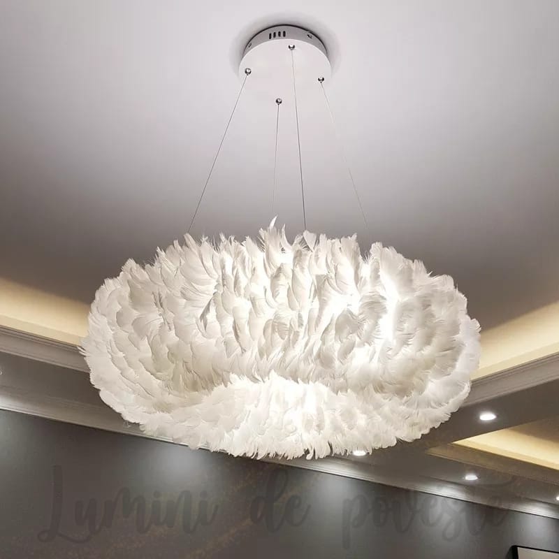 Candelabru cu pene naturale Puff 600, 8 surse de iluminare