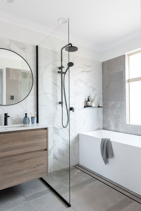 Dacă însă o cadă ar încărca prea mult spațiul sau ești mereu pe fugă și preferi dușurile rapide, atunci ia în considerare amenajarea unui spațiu pentru duș. Delimitează-l prin alegerea unei faianțe speciale prin culoare sau formă, la fel și gresia. Folosește un perete de sticlă din tavan până în podea sau unul așezat pe un perete îmbrăcat în faianță. Oricum, va arăta super bine.