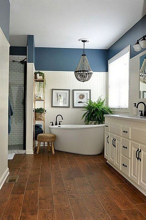 Parchetul este recent folosit în amenajarea băilor. Se găsește parchet special pentru așa ceva, rezistent la umiditate. Așa că nu ai vreun motiv să nu îl așezi în baia ta. Pe lângă faptul că va arăta excelent, va da o notă calcă încăperii. Pentru o notă modernă, unitară, îl poți folosi și pe zone mici de pe perete.
