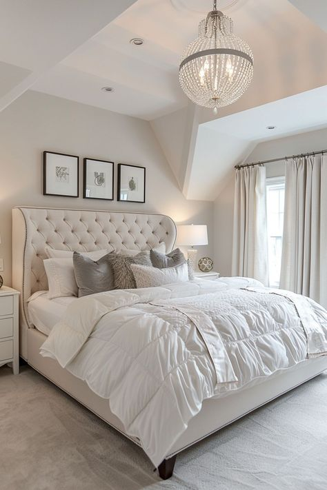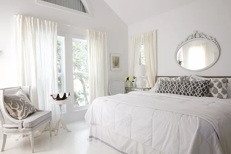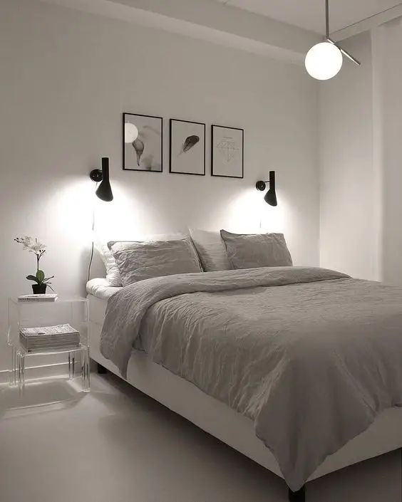 Pentru un stil elegant de amenajare, alege mobilier cu linii simple și neapărat lenjerii de un alb imaculat. Un covor alb-gri deschis va da foarte bine, iar o lustră contrastantă, dar elegantă, va completa totul.