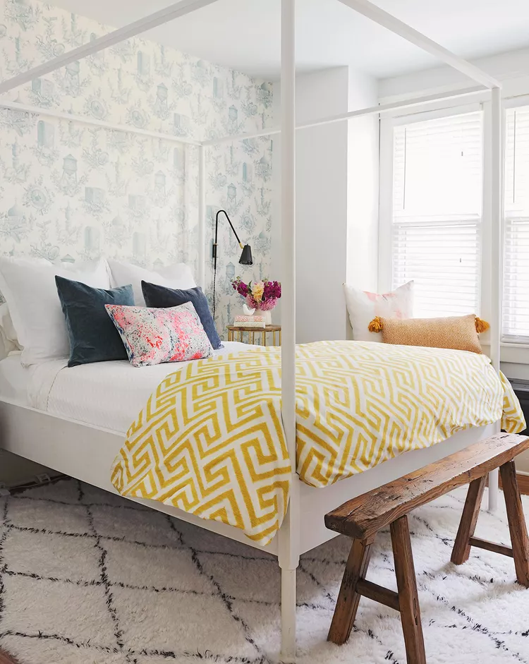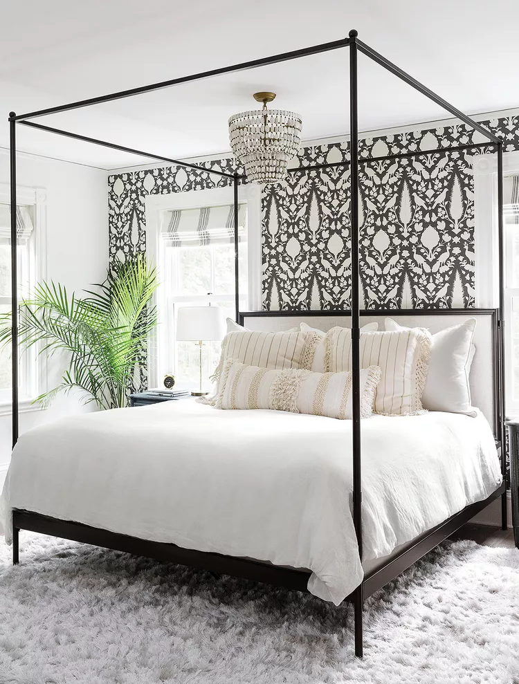 Patul poate fi alb, crem sau chiar negru. În acest caz însă, nu alege unul tapițat, de exemplu, cu foarte mult cadru. Un cadru extrem de simplu ar fi cel mai potrivit, iar dacă spațiul permite, unul cu baldachin s-ar potrivi perfect.