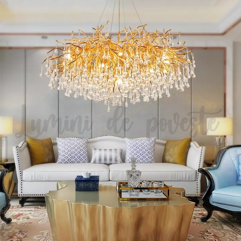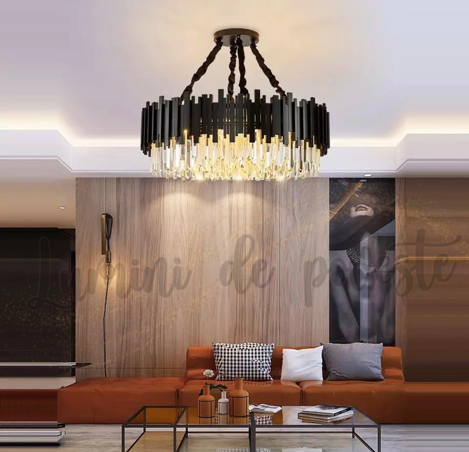 În cazul unui living mare, corpul de iluminat poate fi și el unul generos, în ton cu designul.