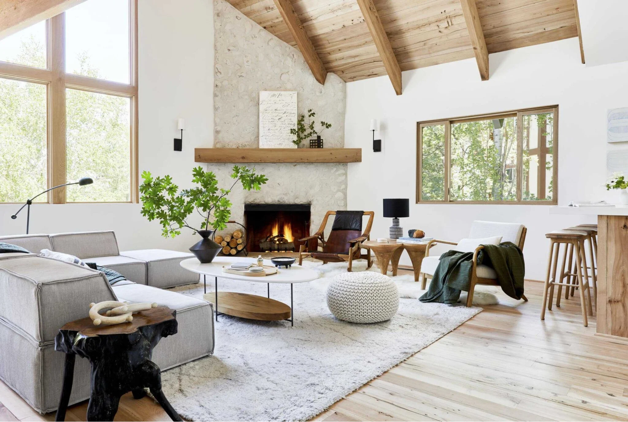 Pentru a te bucura de frumusețea șemineului, alege o canapea super confortabilă pe care să o așezi vis-a-vis.