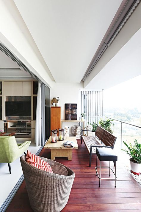 Zona balconului o poți folosi pentru a pune acolo o măsuță de cafea și două fotolii sau pentru o bibliotecă și un lounge în care să citești. Dacă însă spațiul și forma o permit, integrează-l complet în living, fără a face o delimitare clară.