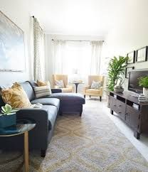 Forma dreptunghiulară a living-ului dictează amenajarea generală: o canapea pe o latură, pe peretele opus un televizor. Ceea ce vine pe lângă va da aspectul dorit de tine: perdeaua aleasă, culorile pereților și ale texturilor, planta pe care o așezi în colț.