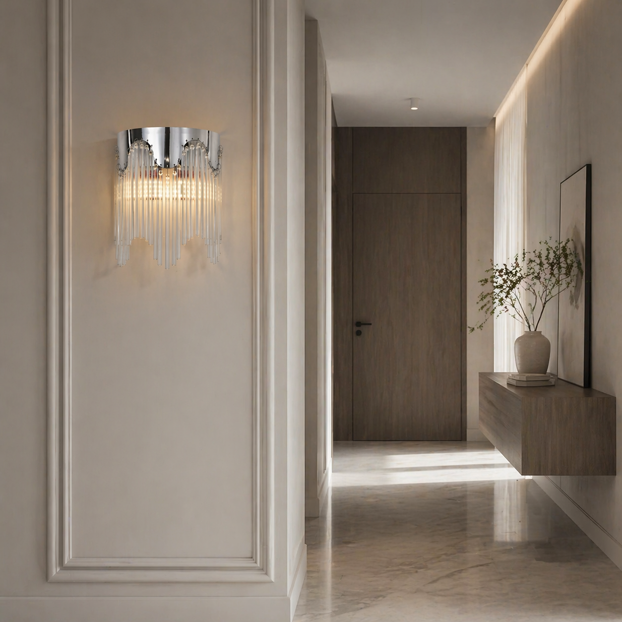 Aplica Cascade Silver aduce un plus de eleganta si functionalitate oricarui spatiu interior, fiind ideala pentru dormitor, hol sau living. Proiectata pentru a oferi o iluminare eficienta si un design modern, aceasta aplica transforma atmosfera camerei prin lumina sa calda si placuta.