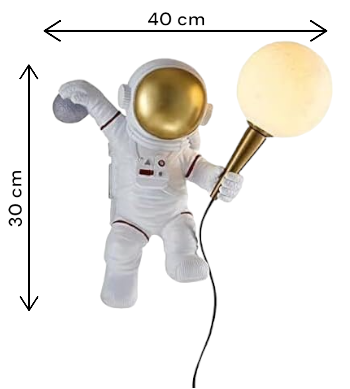 Cu o dimensiune generoasa, avand o inaltime de 30 cm si o latime de 40 cm, aceasta aplica de perete Astronaut devine un element central in camera unui copil. Culoarea alba ofera versatilitate, permitand asortarea cu numeroase stiluri de amenajare interioara, de la modern la minimalist sau eclectic. In plus, tipul de intrerupator pe priza asigura o utilizare facila si adaptata nevoilor actuale.