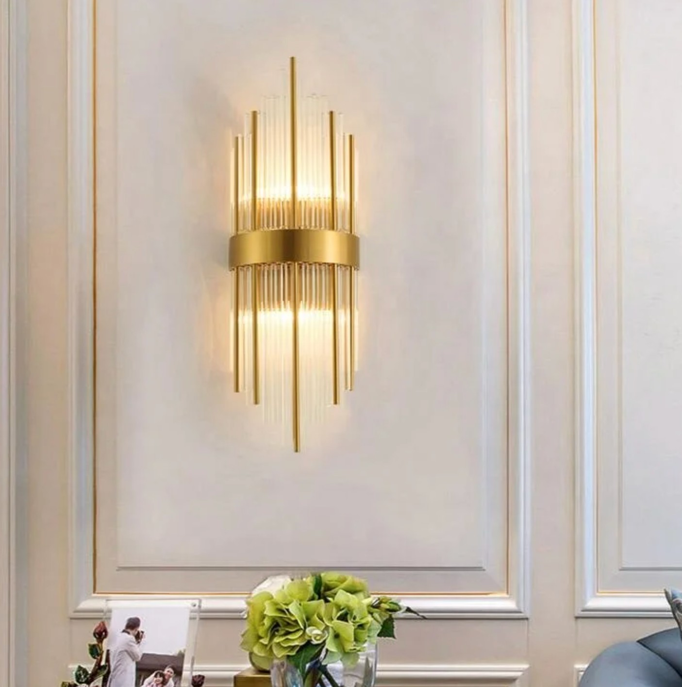 Cu o lungime de 45 cm, aplica devine un element decorativ de impact, fără a fi ostentativă. Structura din metal rezistent, finisată în nuanța auriu cald, este completată cu delicate inserții de cristal, care reflectă lumina într-un joc subtil și elegant. Fie că este amplasată într-un decor clasic sau modern, aplica Harmony Gold Mini se integrează armonios, oferind un echilibru perfect între funcționalitate și estetică.