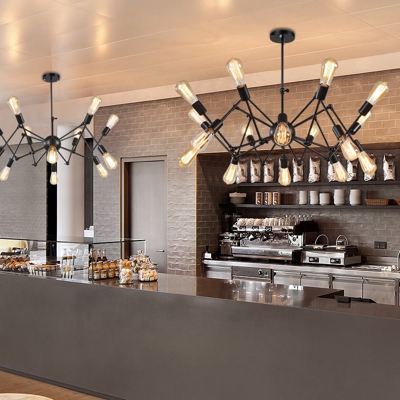 Constructia Candelabrului Industrial 12 cu diametru reglabil combina materiale rezistente si estetice: metalul si sfoara, care impreuna confera un aspect industrial autentic, ideal pentru spatii comerciale, birouri sau locuinte cu un design contemporan. Culoarea neagra accentueaza stilul minimalist si industrial, facand din acest candelabru un element decorativ ce devine punctul focal al oricarei incaperi.
