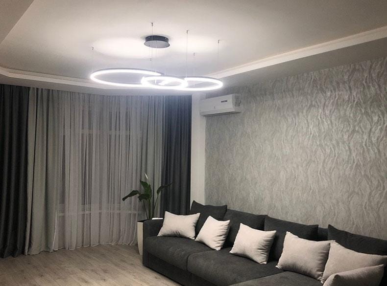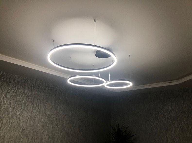 Candelabru LED 148 W Minimalist Black 30+40+60, Telecomanda reprezinta o alegere ideala pentru cei care doresc sa combine eficienta energetica cu un design contemporan si elegant. Acest candelabru LED se remarca prin structura sa moderna, avand trei cercuri concentrice cu diametre de 30, 40 si 60 cm, realizate din acril si metal de inalta calitate. Finisajul negru adauga un aspect sofisticat, integrandu-se perfect in orice decor minimalist sau modern. Cu o putere totala de 148 W si un flux luminos impresionant de 9620 lumeni, Candelabru LED 148 W Minimalist Black 30+40+60, Telecomanda ofera o iluminare excelenta pentru orice incapere, fie ca este vorba de living, dining sau birou. Dispune de trei surse de iluminare cu soclu LED, permitand selectarea culorii luminii – calda, naturala sau rece – in functie de preferinte sau momentul zilei. Datorita functiei dimabil si a telecomenzii incluse, intensitatea luminii poate fi ajustata cu usurinta, asigurand un confort vizual optim. Candelabru LED 148 W Minimalist Black 30+40+60, Telecomanda este proiectat pentru a fi atat practic, cat si durabil, beneficiind de certificari CE si RoHS si o garantie de 2 ani. Instalarea este simplificata de sistemul de prindere robust, iar optiunea de comanda prin intrerupator clasic sau telecomanda ofera flexibilitate maxima in utilizare. Candelabrul functioneaza pe o singura faza, fiind compatibil cu majoritatea instalatiilor electrice rezidentiale. Alege acest candelabru LED pentru a transforma orice spatiu intr-unul rafinat si bine luminat, bucurandu-te de un echilibru perfect intre functionalitate, economie de energie si estetica moderna.