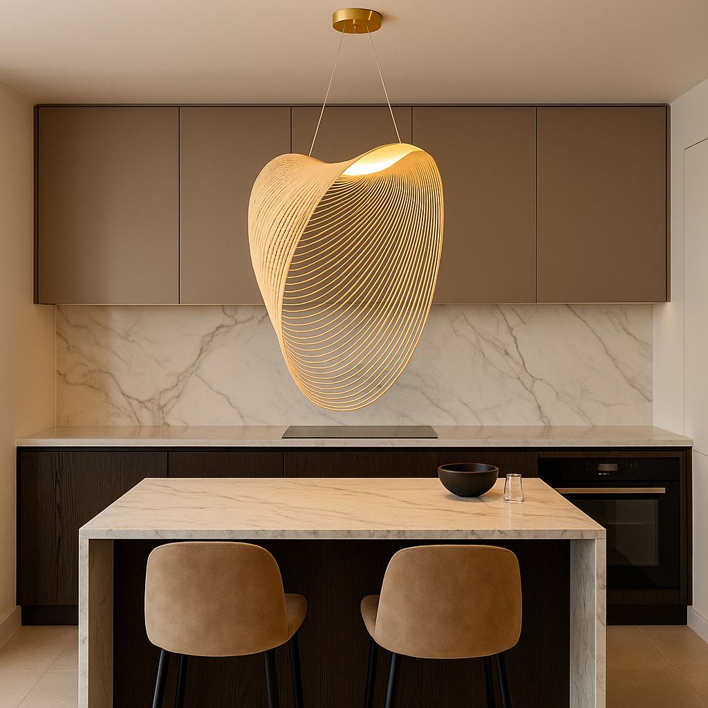 Candelabru LED 15 W Helix reprezinta solutia ideala pentru iluminatul elegant si eficient al oricarui spatiu interior. Cu un design sofisticat, ce imbina armonios bambusul si metalul, acest candelabru aduce un plus de rafinament si naturalete in decorul dumneavoastra. Avand un diametru generos de 80 cm, Candelabru LED 15 W Helix se remarca prin dimensiunile sale potrivite pentru camere de dimensiuni medii si mari, oferind o prezenta vizuala remarcabila.