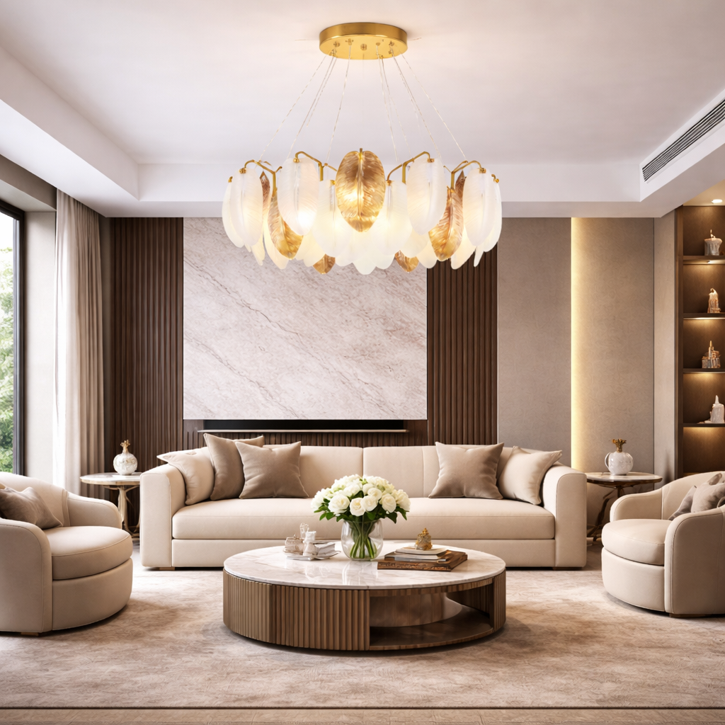 Candelabrul LED Feather Gold Luxury TK aduce un strop de eleganta in orice spatiu. Acest candelabru de lux, cu un design rafinat, este perfect pentru a transforma livingul, diningul sau chiar biroul intr-un loc de vis. Cu un soclu E14 si 8 surse de iluminare, candelabrul LED Feather Gold Luxury TK ofera o lumina calda si primitoare, creand o atmosfera placuta si confortabila.