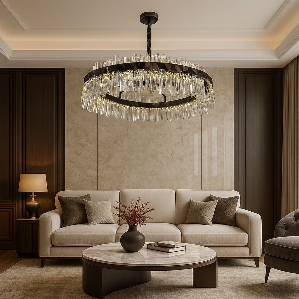 Materialele premium utilizate pentru realizarea acestui model sunt cristalul K9 si metalul de cea mai buna calitate, care confera produsului un aspect sofisticat si durabilitate ridicata. Finisajul negru lucios adauga un plus de eleganta si modernitate, integrandu-se cu usurinta in diverse stiluri de amenajare interioara. Candelabru LED Glance Negru Lucios 80 beneficiaza de o tehnologie avansata care permite reglarea intensitatii luminoase, fiind astfel dimabil, ceea ce va ofera control total asupra atmosferei din incapere.
