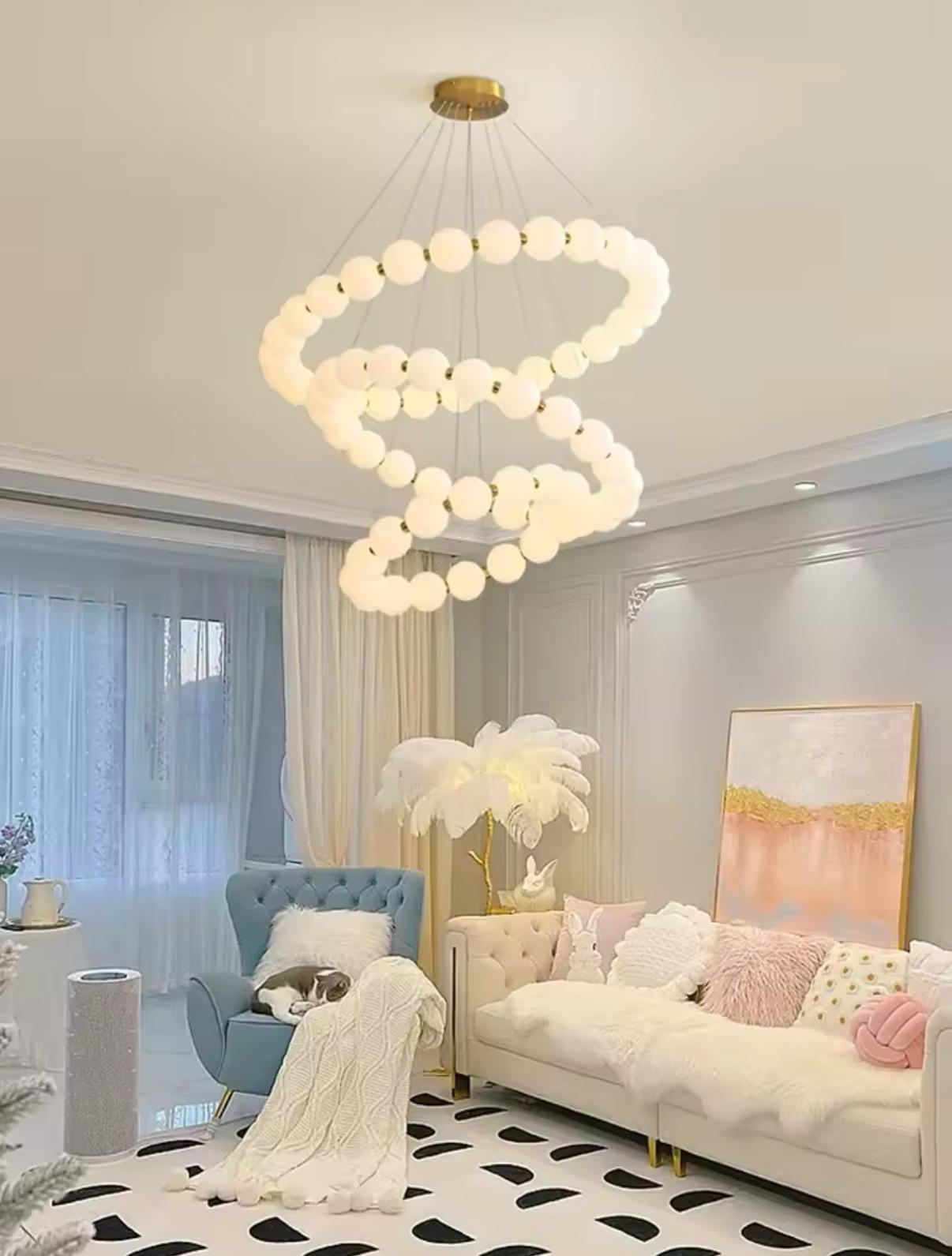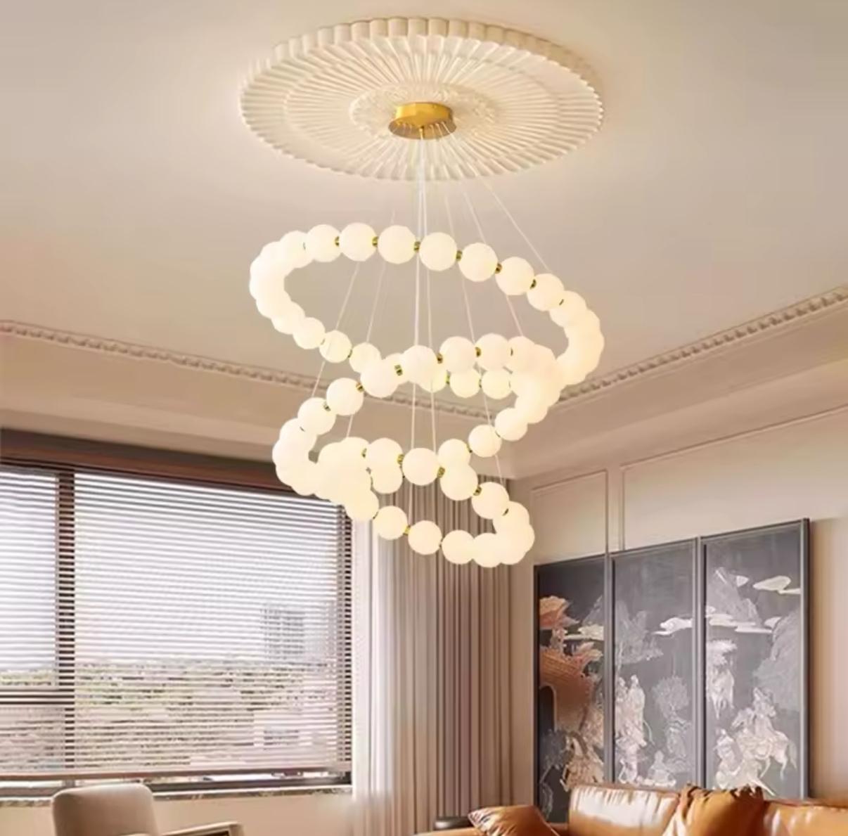 Candelabru LED Pearls 80+60+40 este o alegere extraordinara pentru orice spatiu, combinand functionalitatea cu un design elegant. Acest candelabru LED, disponibil in dimensiuni variate de 40 cm, 60 cm si 80 cm, ofera o iluminare deosebita si o atmosfera calda. Cu o putere de 120 W si un flux luminos impresionant de 18000 lumeni, Candelabru LED Pearls asigura o iluminare optima, fie ca este vorba de un living, un dormitor sau un spatiu comercial.