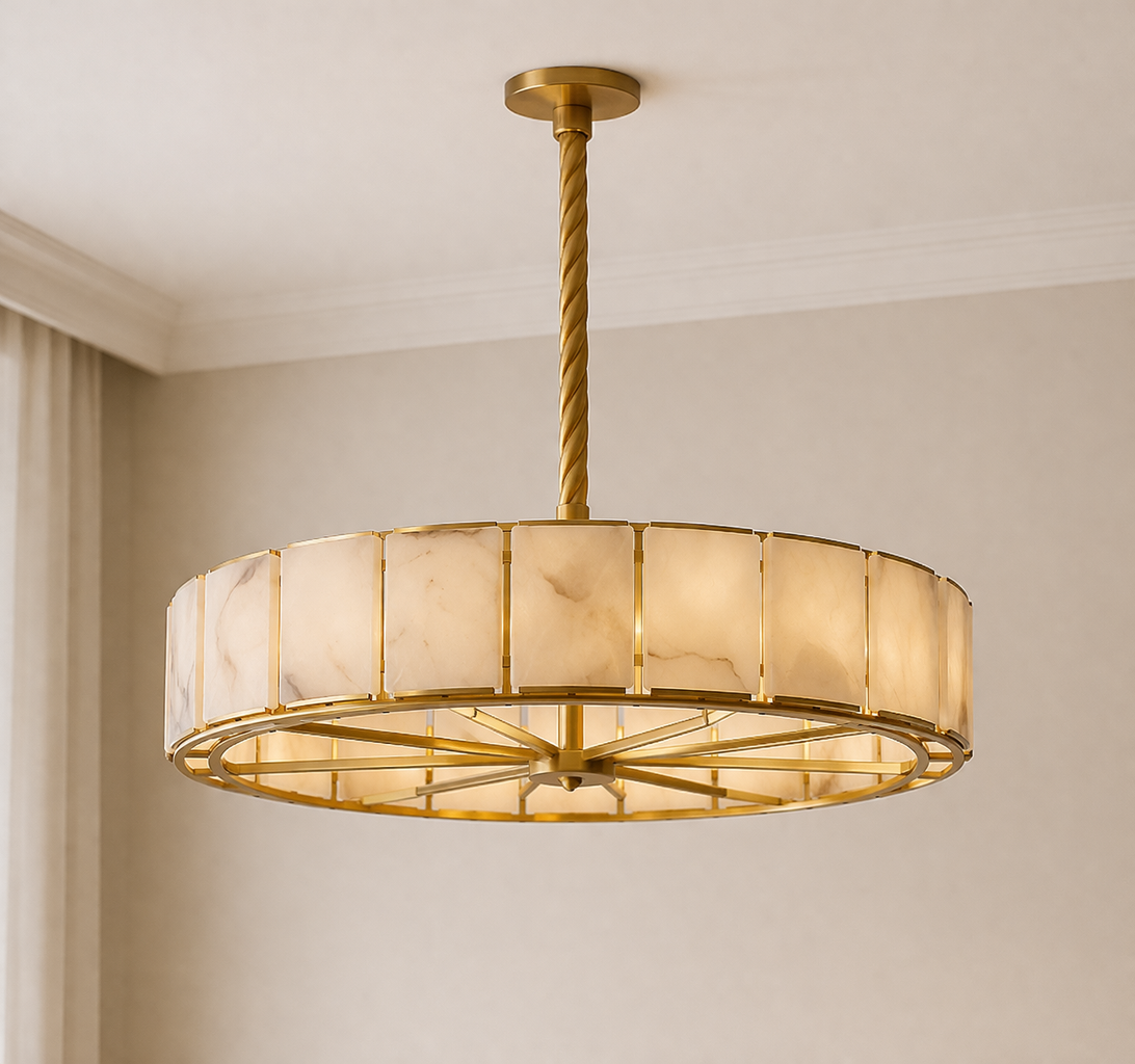 Candelabru Frame Natural Marble Luxury TK aduce un strop de eleganta si rafinament in orice spatiu. Acest candelabru impresionant, cu un design sofisticat, este realizat din marmura naturala si metal de inalta calitate, oferind nu doar o sursa de iluminare, ci si un element decorativ deosebit. Cu un diametru de 60 cm si o inaltime reglabila de 100 cm, candelabrul se adapteaza perfect oricarui tip de incapere, fie ca este vorba de un living modern sau de o sala de mese eleganta.