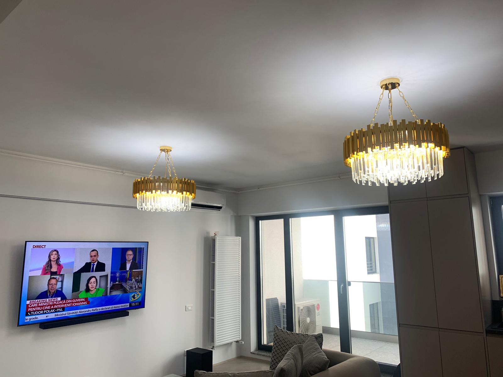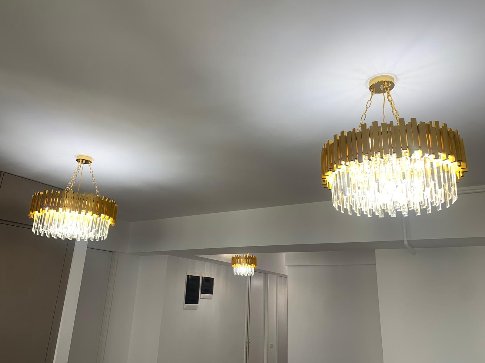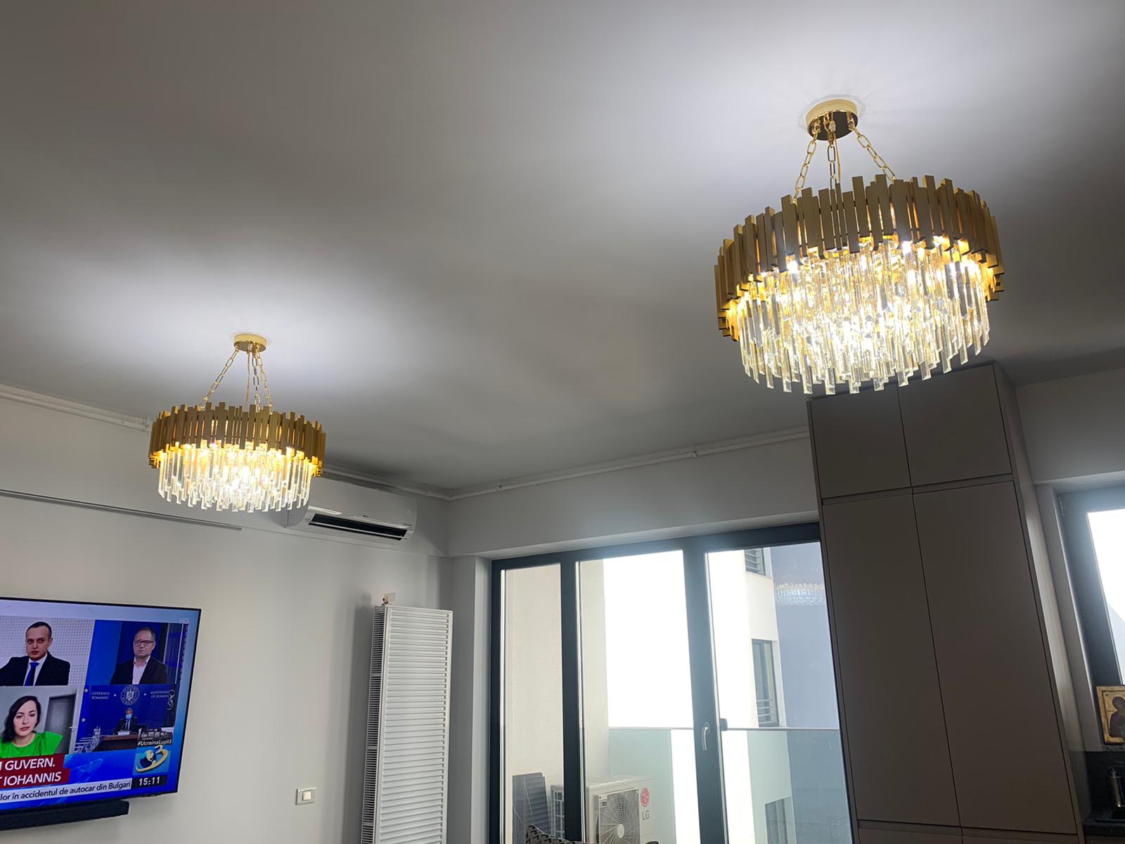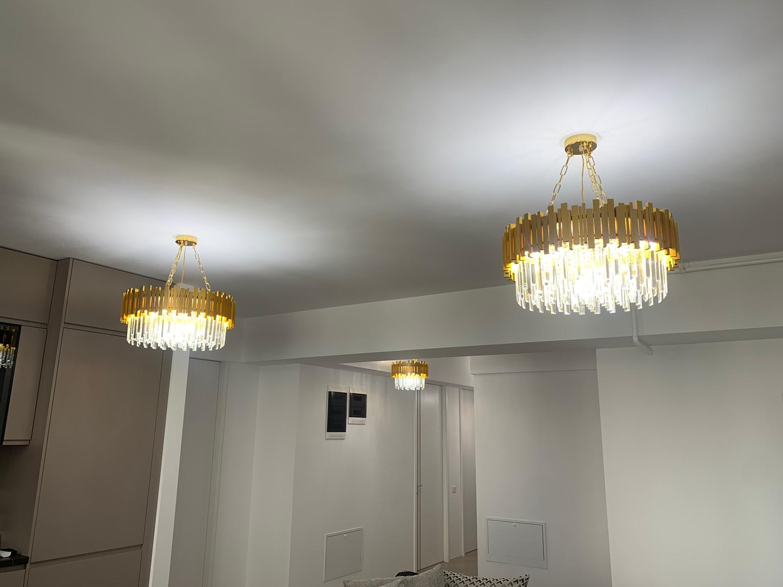 Fie ca este amplasat in living, dining sau intr-un hol spatios, acest candelabru transforma atmosfera prin stralucirea si reflexiile create de cristalul K9, subliniind stilul sofisticat al decorului. Designul sau modern, completat de finisajul auriu, se integreaza perfect atat in interioare clasice, cat si contemporane, adaugand valoare estetica spatiului.