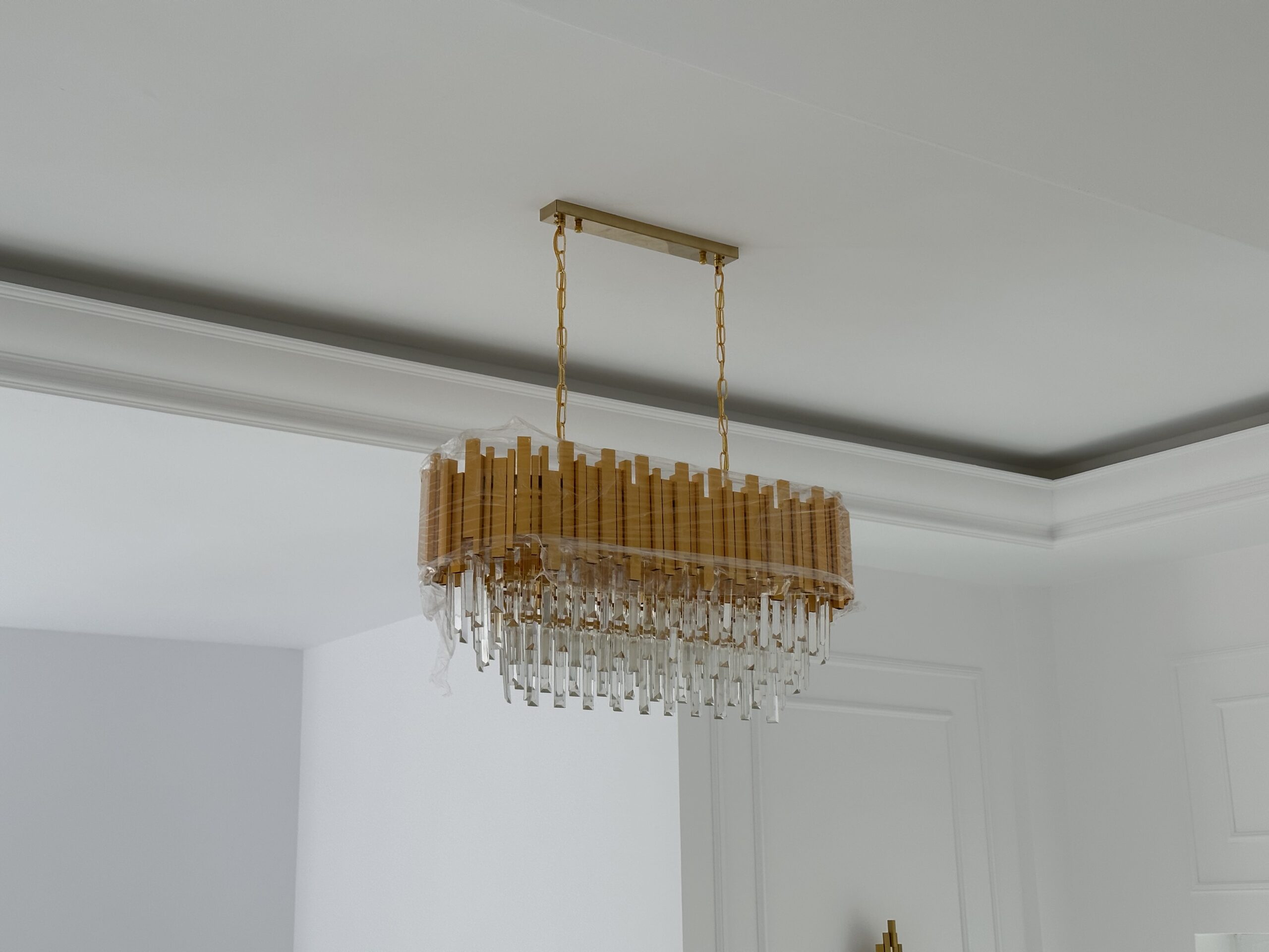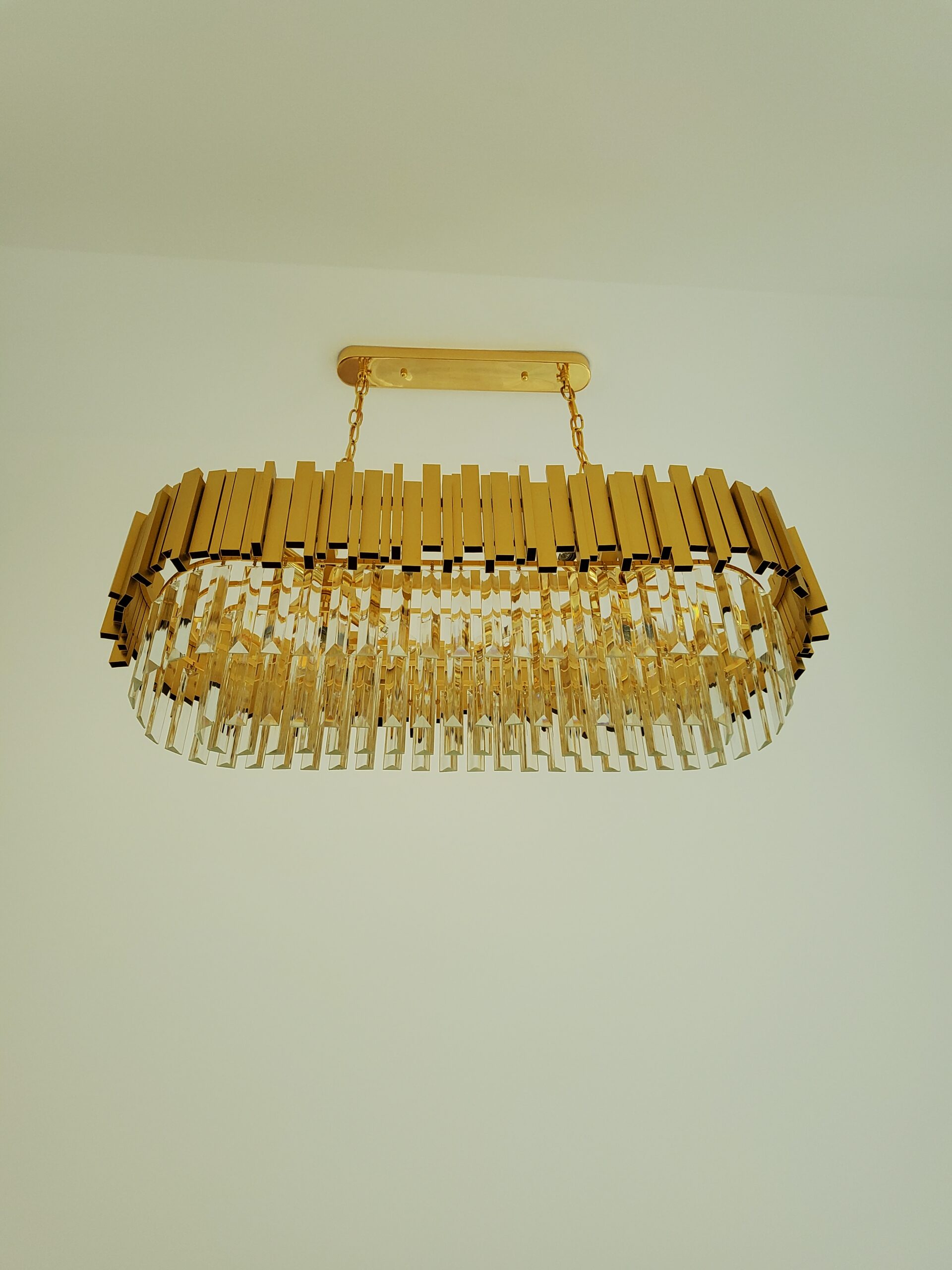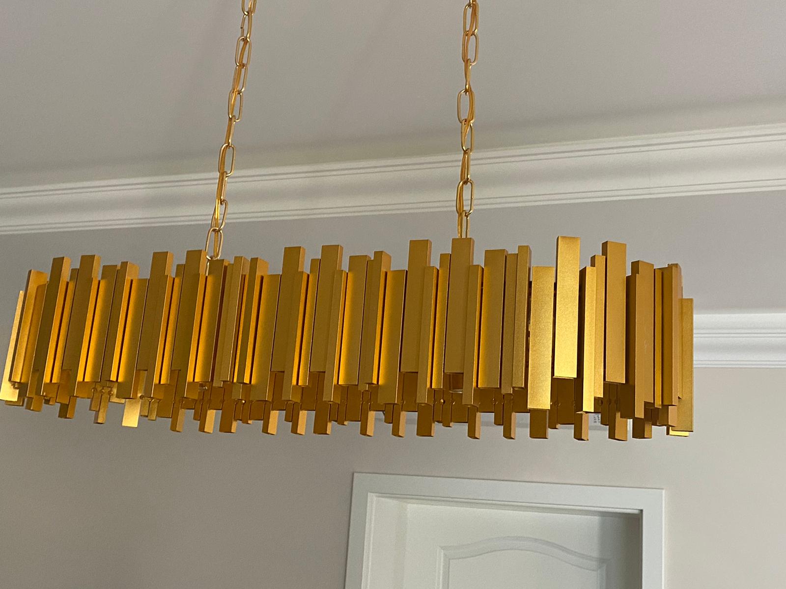Candelabru Scaly Gold Dining 80 x30 reprezinta alegerea ideala pentru cei care doresc sa aduca un plus de rafinament si eleganta in zona de dining sau in orice spatiu ce necesita un accent sofisticat de design. Acest candelabru impresioneaza prin designul sau modern, cu influente clasice, fiind realizat din materiale de inalta calitate precum cristalul K9 si metalul finisat auriu. Dimensiunile sale generoase, cu o lungime de 80 cm si o latime de 30 cm, il fac potrivit atat pentru incaperi spatioase, cat si pentru amenajari cu un stil contemporan, adaugand un efect vizual deosebit.