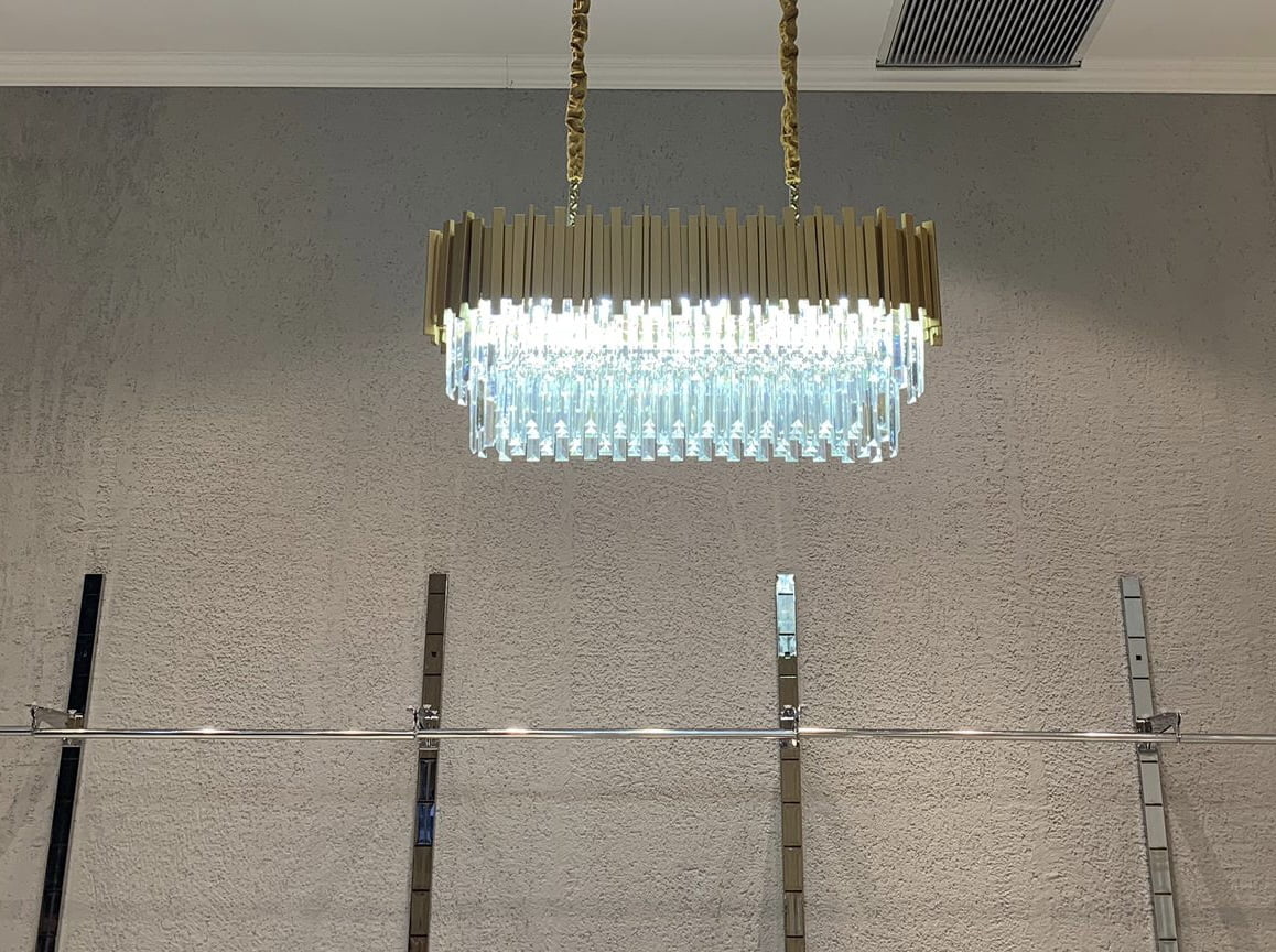 Candelabru Scaly Gold Dining Matte 93 x33 reprezinta alegerea ideala pentru cei care doresc sa adauge un plus de rafinament si eleganta spatiului de dining sau living. Acest candelabru impresioneaza prin designul sau sofisticat, imbinand elemente moderne cu accente clasice, fiind realizat din materiale premium precum cristalul K9 si metalul finisat in nuanta aurie mata. Dimensiunile sale generoase, cu o lungime de 93 cm si o latime de 33 cm, il fac potrivit pentru incaperi spatioase, unde poate deveni punctul central al decorului.