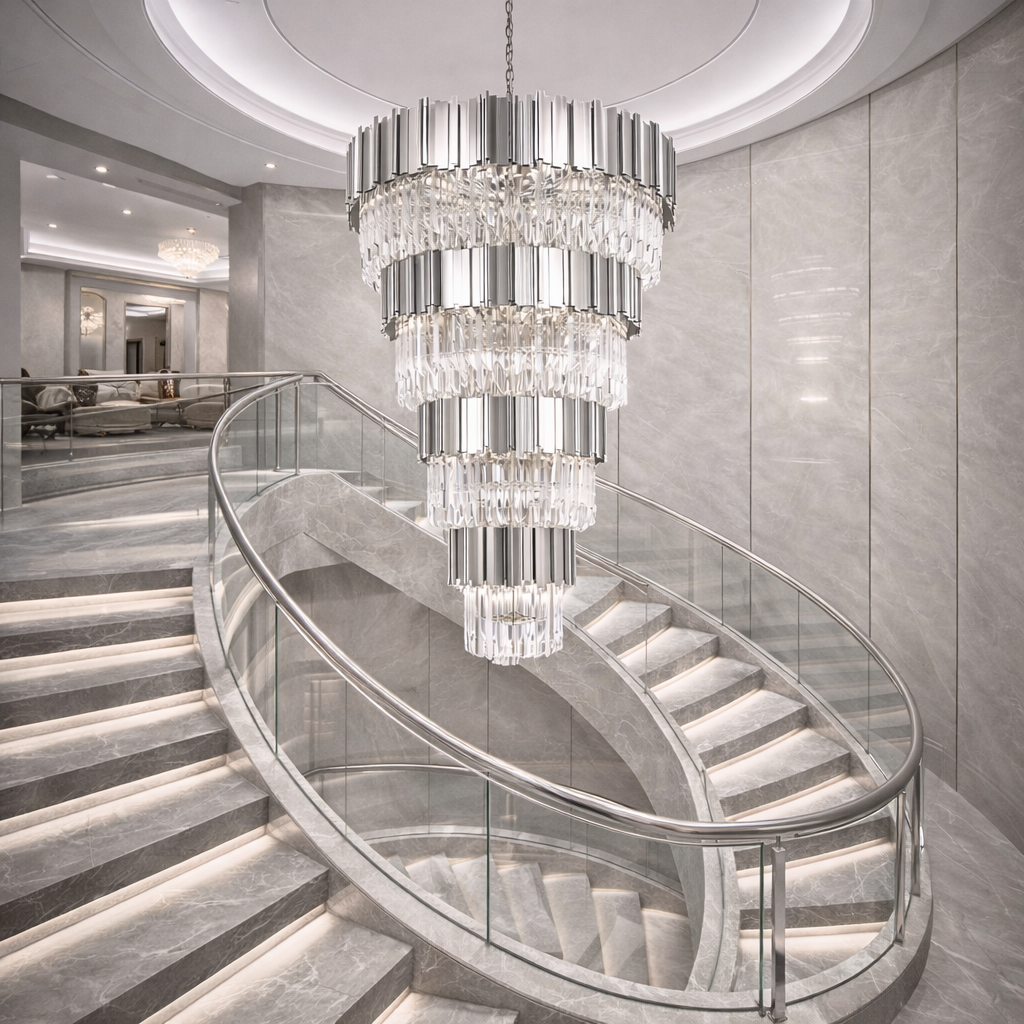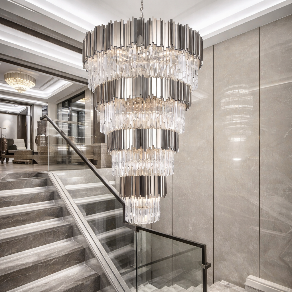Candelabru Scaly Silver Imperial 100 x 160 este un element de decor deosebit, perfect pentru a adăuga un strop de eleganță oricărui spațiu. Cu un diametru de 100 cm și o înălțime de 160 cm, acest candelabru impresionant devine rapid centrul de atracție al oricărei încăperi. Fabricat din sticla de cea mai bună calitate și metal, Candelabru Scaly Silver Imperial 100 x 160 emană un farmec clasic și rafinat, fiind ideal pentru scari, săli de evenimente, restaurante sau chiar pentru un living sofisticat.