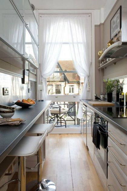 Amenajarea unei bucatarii mici si inguste in functie de forma