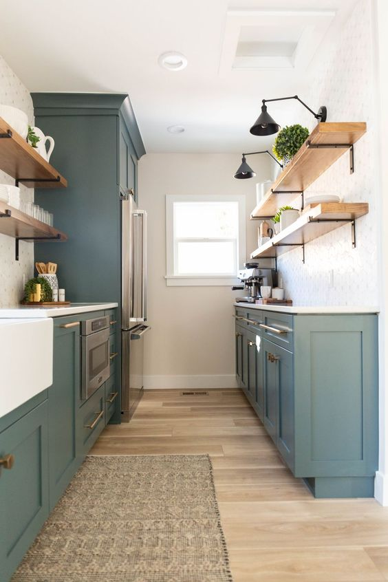 Bucătăriile mici și înguste au nevoie de ceva mai multă atenție și planificare la amenajare. Este nevoie de spațiu de depozitare. Locul pentru dulapuri este redus și lucrezi cu ce rămâne după ce introduci în plan frigiderul, chiuveta și aragazul. Acestea sunt esențiale, nu poți renunța la ele.