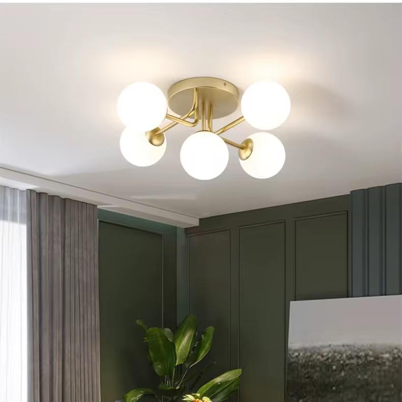 Lustra cu globuri Moon 5 se deosebeste prin combinatia de materiale premium, metalul auriu si sticla de inalta calitate, asigurand atat durabilitate, cat si un aspect vizual impresionant. Diametrul de 50 cm o face potrivita atat pentru camere de dimensiuni medii, cat si pentru spatii generoase, devenind rapid punctul central al oricarui decor. Produsul nu include becuri, oferindu-va astfel libertatea de a alege tipul si intensitatea luminii, in functie de preferinte.