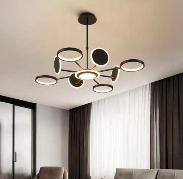Lustra LED Space Eternity LM Black 8 dispune de 9 surse de iluminare si permite ajustarea intensitatii luminii, oferind posibilitatea de a alege intre culori calde, naturale sau reci, in functie de momentul zilei sau de atmosfera dorita. Cu dimensiunile sale de 90 cm pe 90 cm, aceasta lustra se integreaza perfect in orice decor, fiind realizata din materiale de calitate superioara, precum acrilul si metalul, care garanteaza durabilitate si un aspect elegant.