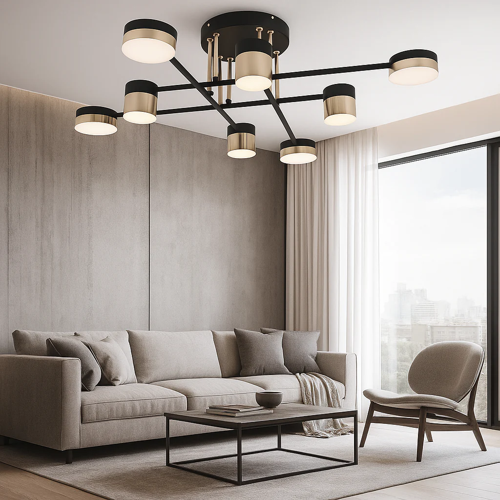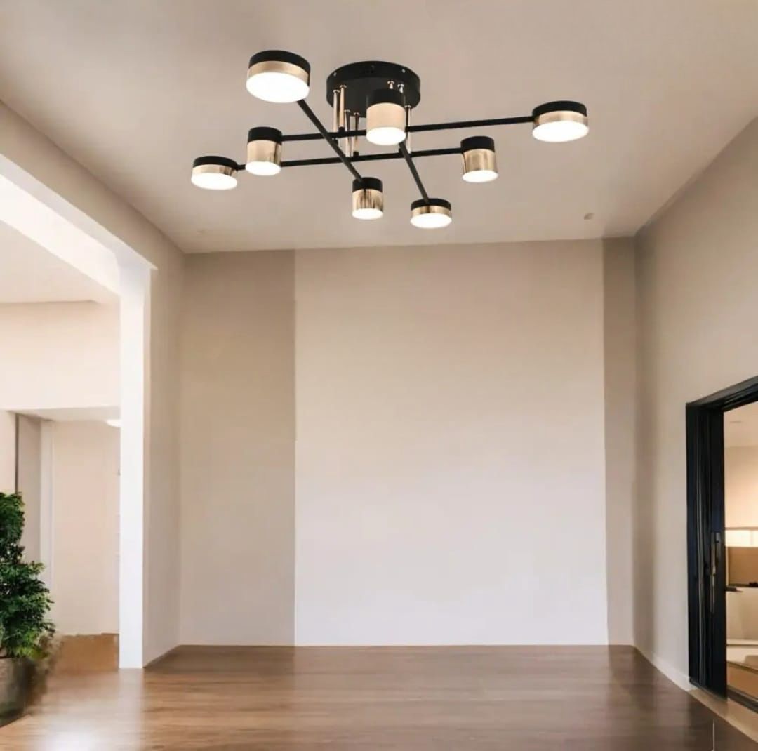 Designul Lustra LED 96 W Space Black 8 imbina eleganta cu functionalitatea, avand o constructie robusta din metal si acril, finisata in nuante de auriu si negru. Cu un diametru de 85 cm si o inaltime de 35 cm, aceasta lustra este potrivita pentru camere de dimensiuni medii si mari, oferind o prezenta vizuala impunatoare si un aspect sofisticat. Lustra LED 96 W Space Black 8 ofera trei optiuni de culoare a luminii: cald, natural si rece, permitand adaptarea atmosferei in functie de preferinte si necesitatile utilizatorului.