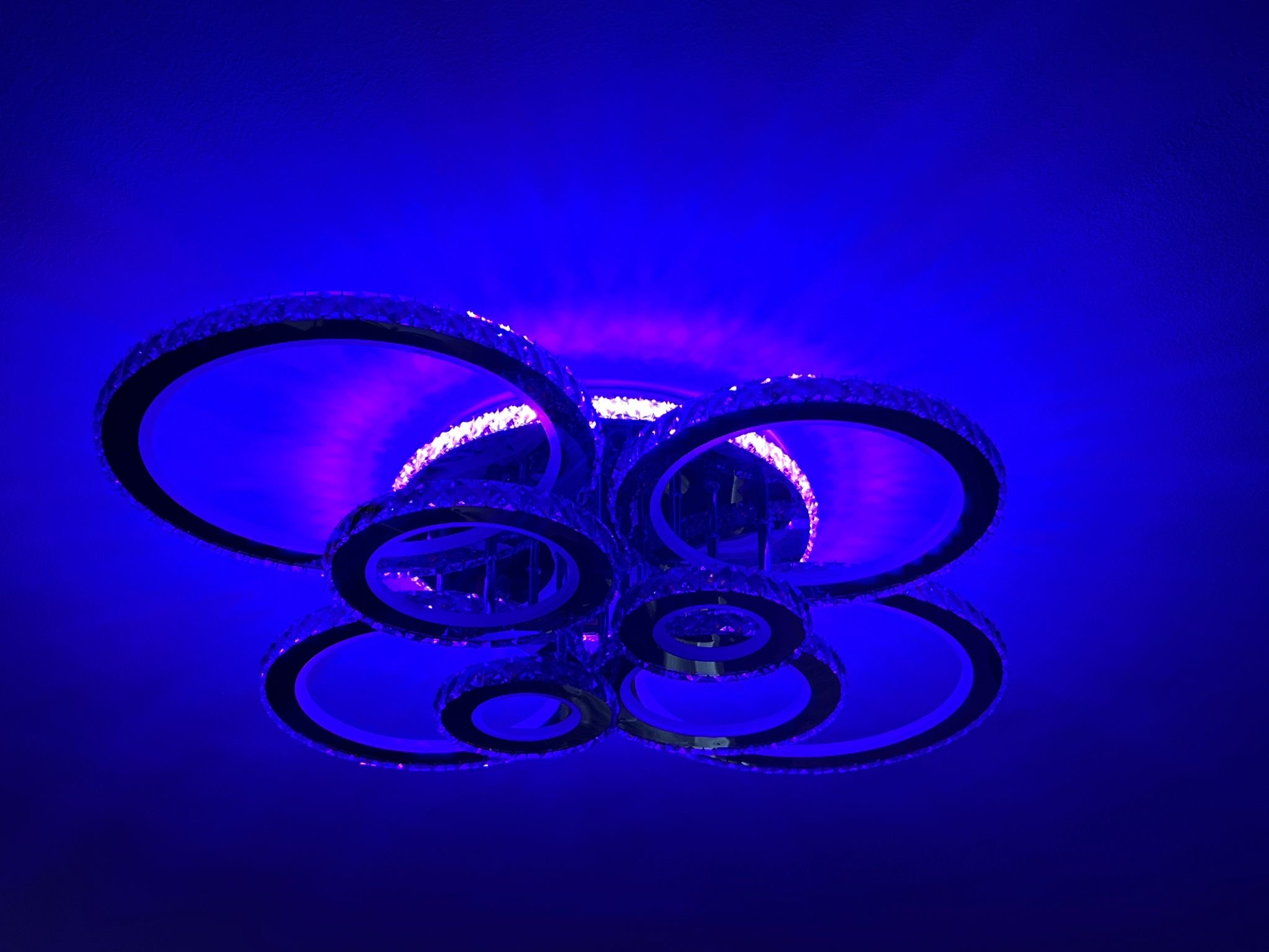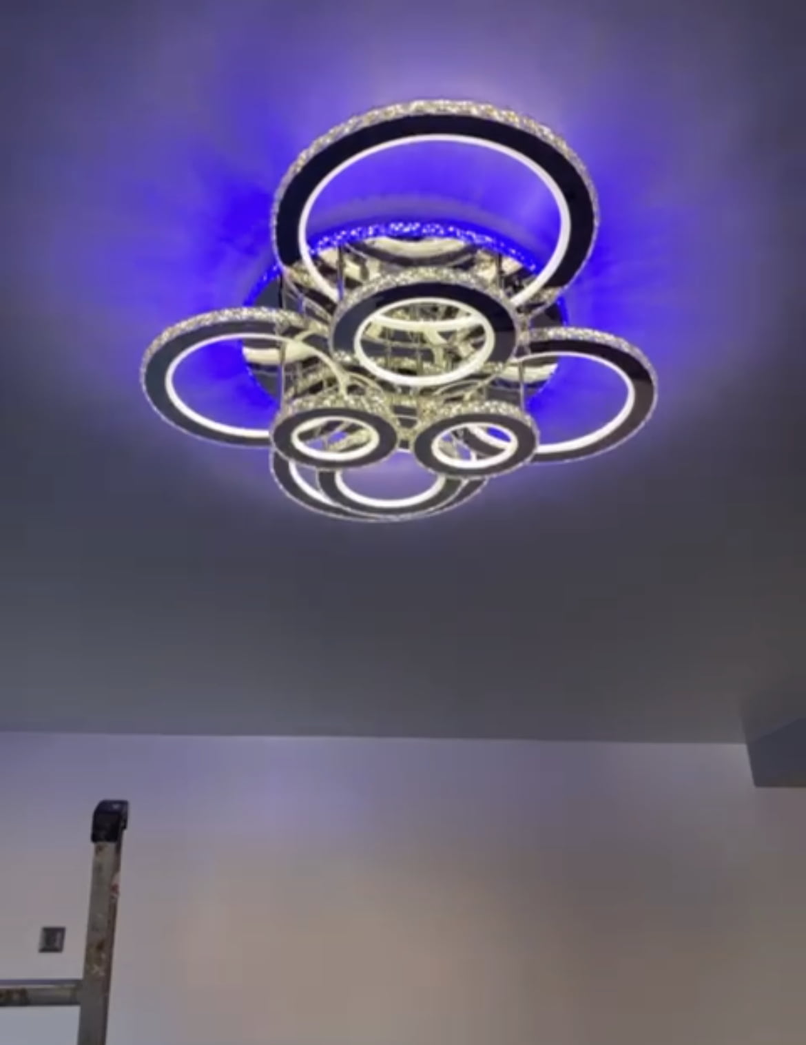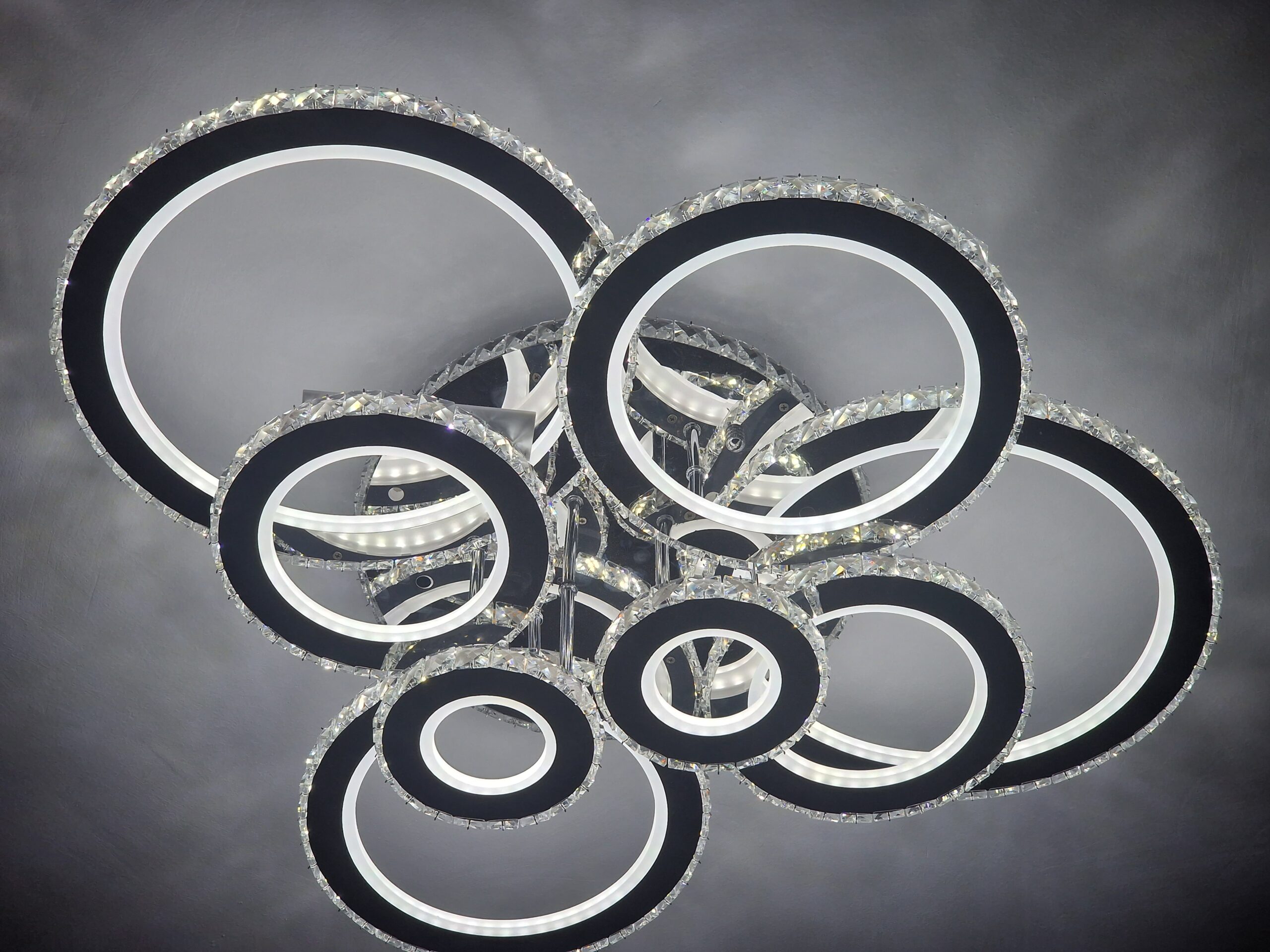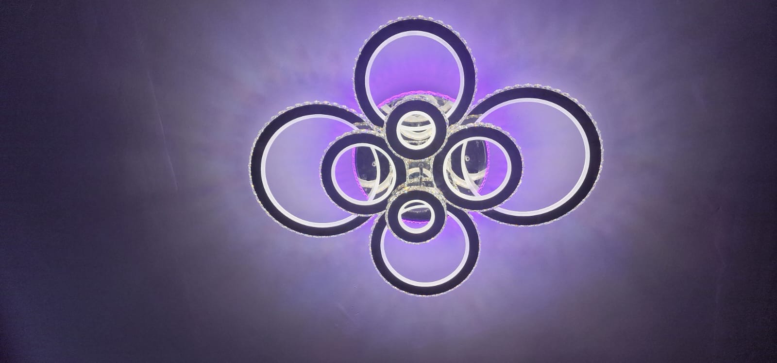 Lustra LED 324 W Cristal 8 Cercuri RGB, Telecomanda, reprezinta alegerea ideala pentru cei care doresc un sistem de iluminat modern, eficient si elegant in orice incapere. Aceasta lustra LED se remarca printr-un design sofisticat, compus din opt cercuri din cristal K9 de inalta calitate, montate pe o structura metalica finisata in argintiu si crom, adaptandu-se cu usurinta atat in livinguri, cat si in birouri sau sali de conferinta. Cu o putere impresionanta de 324 W si un flux luminos de 21060 lumeni, Lustra LED 324 W Cristal 8 Cercuri RGB, Telecomanda, ofera o iluminare puternica si uniforma, acoperind suprafete generoase (dimensiuni: latime 70 cm, lungime 90 cm). Integreaza tehnologia LED, ceea ce garanteaza un consum redus de energie si o durata de viata extinsa, sustinuta de garantia de 2 ani si certificatele CE si Ro Hs. Datorita posibilitatii de a regla intensitatea luminii si a schimba temperatura de culoare intre cald, natural, rece sau mod RGB, Lustra LED 324 W Cristal 8 Cercuri RGB, Telecomanda, poate crea atmosfera dorita pentru orice moment al zilei sau pentru orice eveniment special. Controlul se realizeaza simplu, fie printr-un intrerupator clasic, fie prin telecomanda inclusa, oferind un plus de confort si flexibilitate. Un alt avantaj il constituie materialele premium utilizate: cristalul K9 adauga o nota de rafinament si stralucire, iar structura robusta din metal asigura durabilitate in timp. Cu un singur fazaj, instalarea este usoara si sigura. Astfel, Lustra LED 324 W Cristal 8 Cercuri RGB, Telecomanda, imbina perfect estetica, performanta si tehnologia de ultima generatie in iluminatul interior.