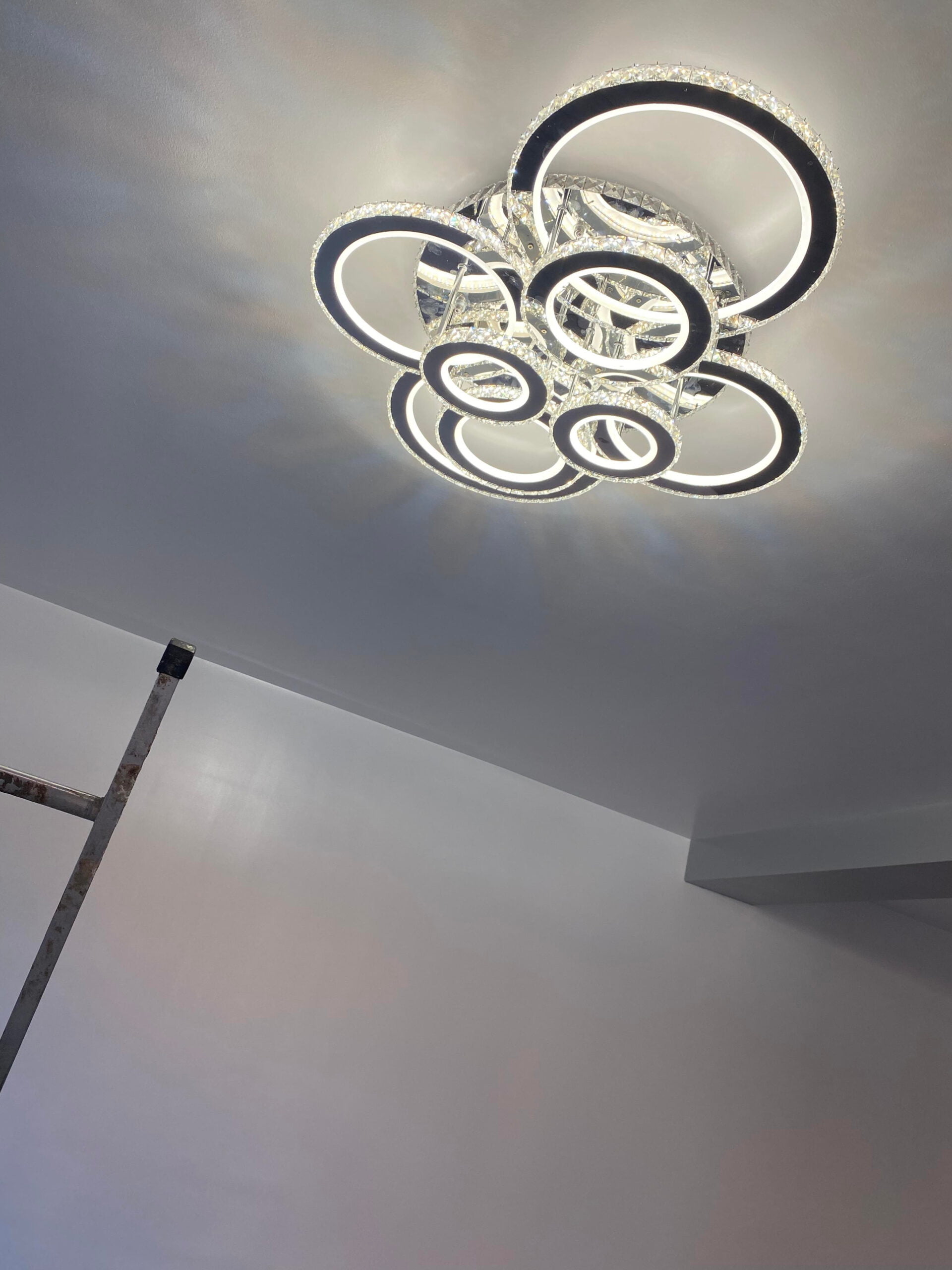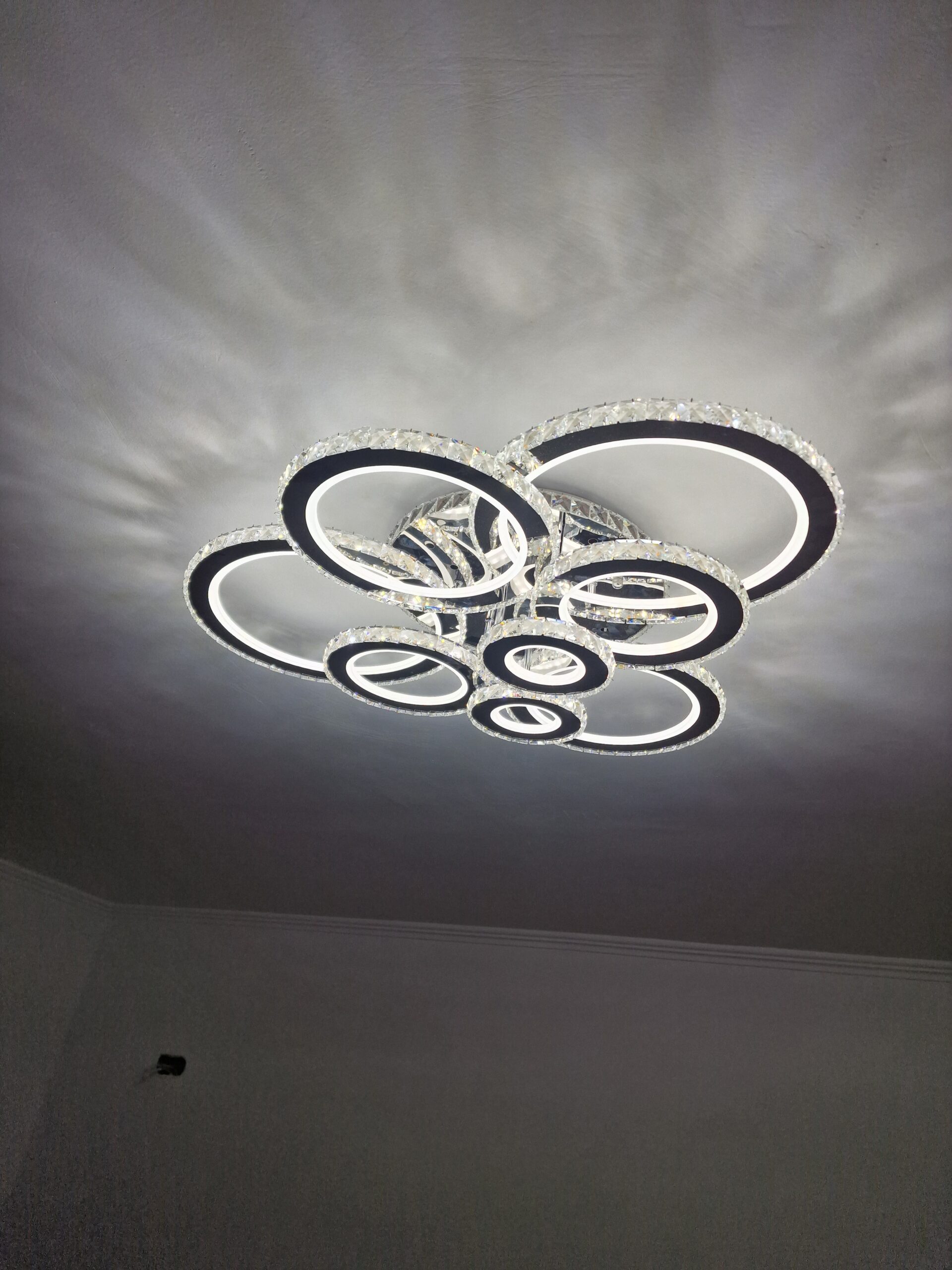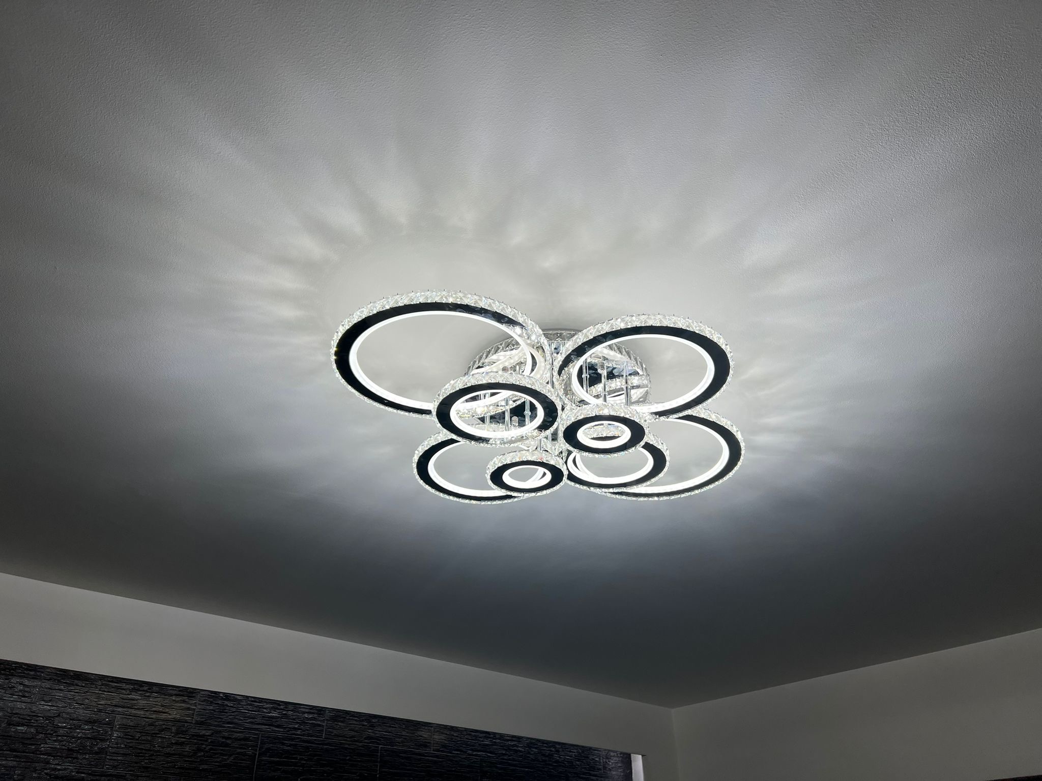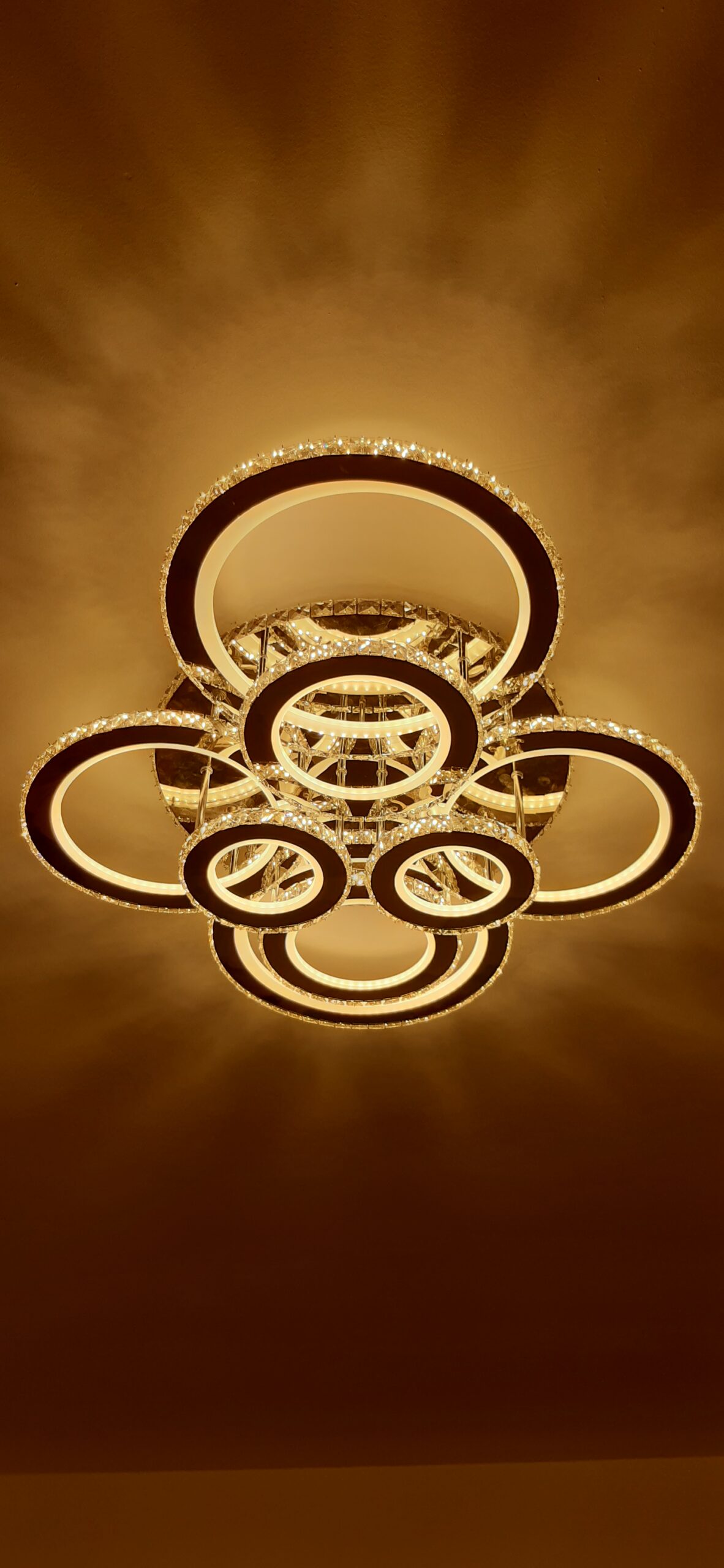 Lustra LED 324 W Cristal 8 Cercuri RGB, Telecomanda, reprezinta alegerea ideala pentru cei care doresc un sistem de iluminat modern, eficient si elegant in orice incapere. Aceasta lustra LED se remarca printr-un design sofisticat, compus din opt cercuri din cristal K9 de inalta calitate, montate pe o structura metalica finisata in argintiu si crom, adaptandu-se cu usurinta atat in livinguri, cat si in birouri sau sali de conferinta. Cu o putere impresionanta de 324 W si un flux luminos de 21060 lumeni, Lustra LED 324 W Cristal 8 Cercuri RGB, Telecomanda, ofera o iluminare puternica si uniforma, acoperind suprafete generoase (dimensiuni: latime 70 cm, lungime 90 cm). Integreaza tehnologia LED, ceea ce garanteaza un consum redus de energie si o durata de viata extinsa, sustinuta de garantia de 2 ani si certificatele CE si Ro Hs. Datorita posibilitatii de a regla intensitatea luminii si a schimba temperatura de culoare intre cald, natural, rece sau mod RGB, Lustra LED 324 W Cristal 8 Cercuri RGB, Telecomanda, poate crea atmosfera dorita pentru orice moment al zilei sau pentru orice eveniment special. Controlul se realizeaza simplu, fie printr-un intrerupator clasic, fie prin telecomanda inclusa, oferind un plus de confort si flexibilitate. Un alt avantaj il constituie materialele premium utilizate: cristalul K9 adauga o nota de rafinament si stralucire, iar structura robusta din metal asigura durabilitate in timp. Cu un singur fazaj, instalarea este usoara si sigura. Astfel, Lustra LED 324 W Cristal 8 Cercuri RGB, Telecomanda, imbina perfect estetica, performanta si tehnologia de ultima generatie in iluminatul interior.