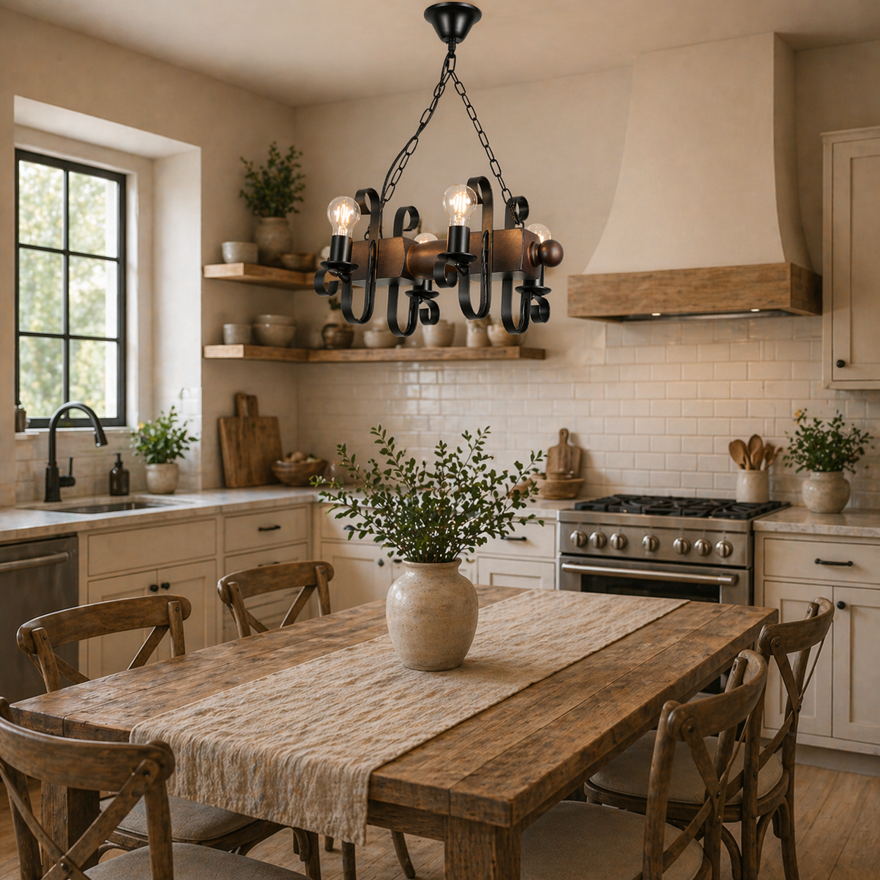 Dotata cu patru surse de iluminare cu soclu E27, lustra Loft Wood 3 ofera o luminozitate puternica si uniforma, care poate fi personalizata in functie de tipul de bec ales, deoarece nu include becuri in pachet. Acest detaliu permite utilizatorului sa selecteze intensitatea si temperatura de culoare potrivite pentru ambientul dorit.