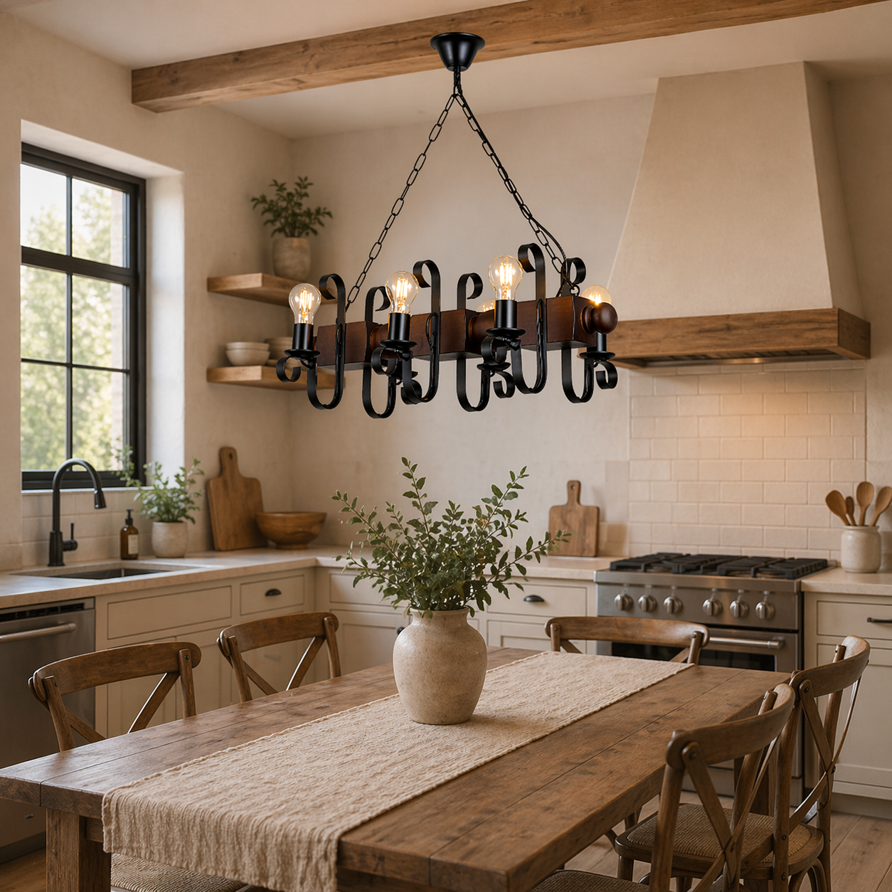 Lustra Loft Wood 6 combina designul modern cu functionalitatea, oferind o iluminare eficienta si estetica pentru spatiile interioare. Cu sase surse de iluminare E27, aceasta lustra asigura o lumina puternica si uniforma, ideala pentru sali de dining, bucatarii sau holuri, unde claritatea si atmosfera placuta sunt esentiale.