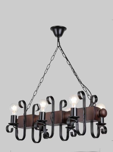 Lustra Loft Wood 6 se remarca prin dimensiunile sale practice: o inaltime de 71 cm si o lungime de 70 cm, dimensiuni care permit amplasarea sa in spatii medii si mari, fara a aglomera vizual camera. Instalarea este simplificata de utilizarea unui intrerupator clasic, compatibil cu majoritatea sistemelor electrice casnice, facilitand controlul luminii.