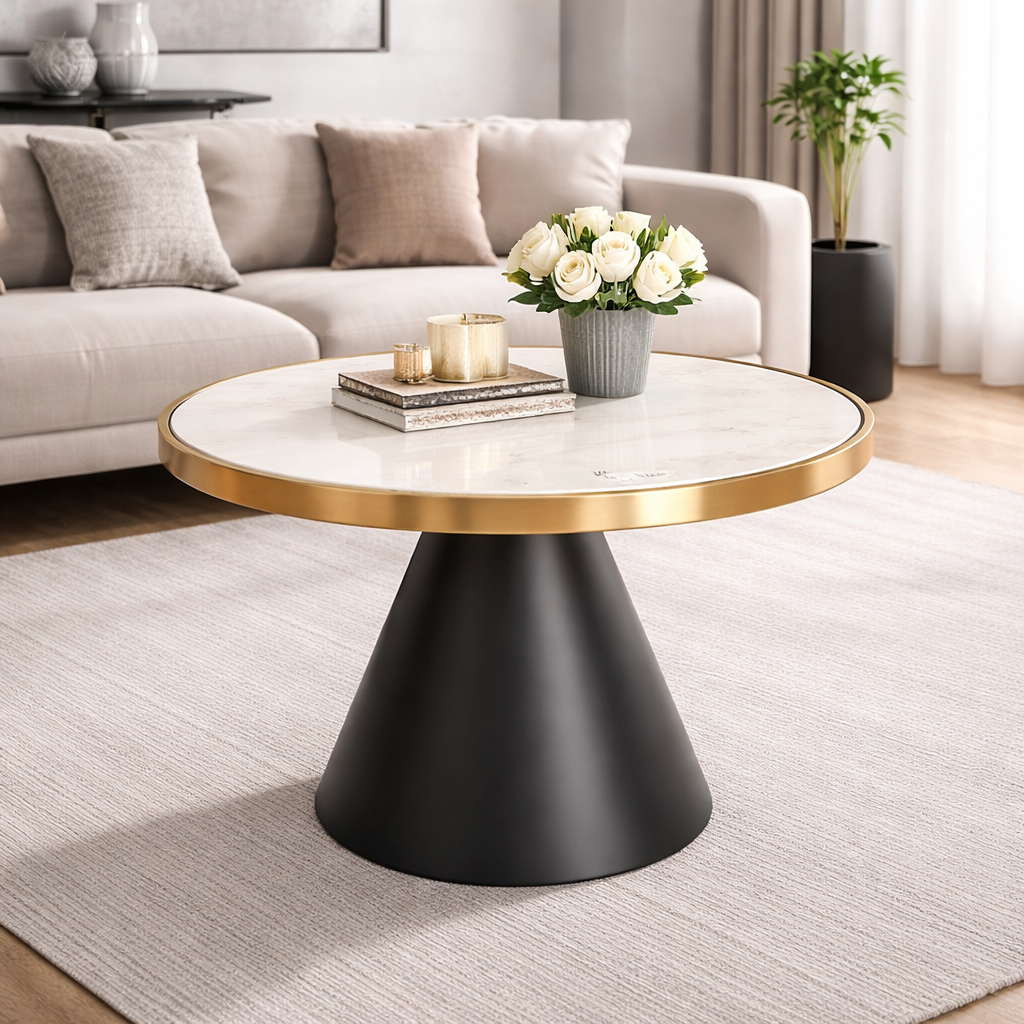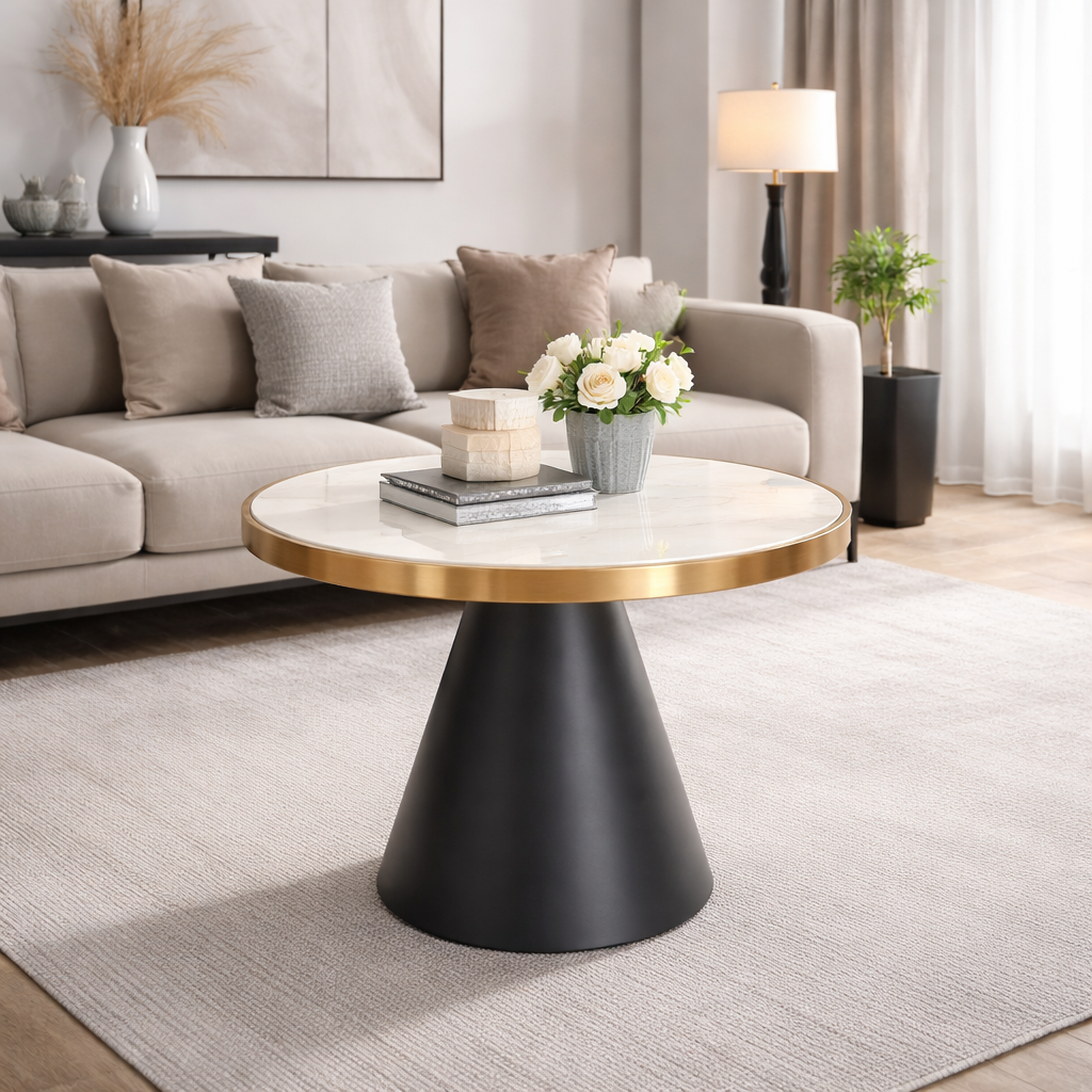 Masuta de cafea Opal aduce un plus de rafinament si functionalitate in orice living modern. Designul sau minimalist, combinat cu culorile aurii si negre, confera un aspect sofisticat, usor de integrat in decoruri diverse, de la cele clasice la cele contemporane.