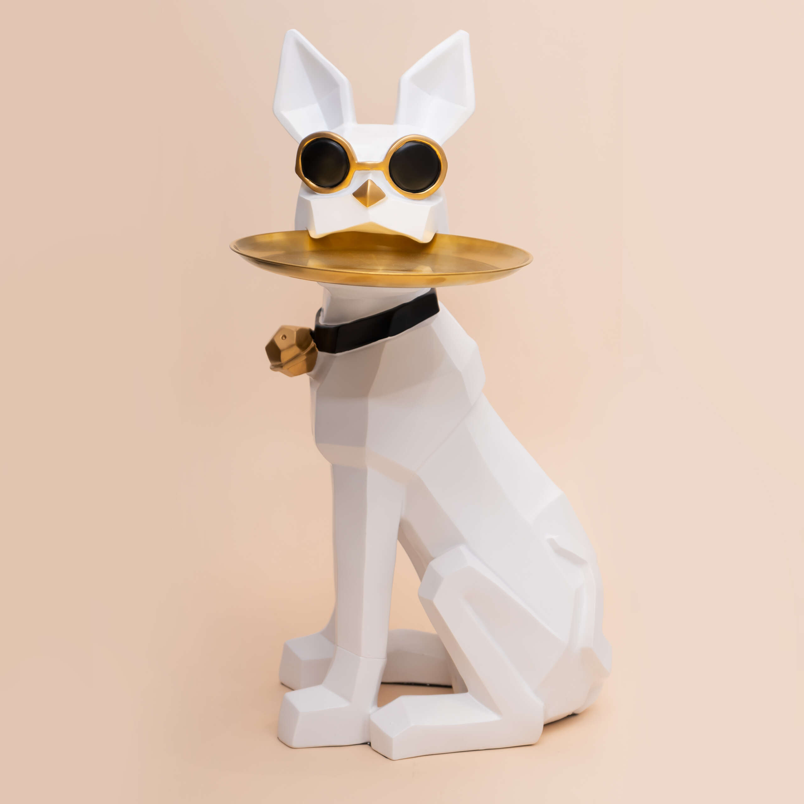 Alege Masuta suport (figurina) Bulldog Alb cu tava aurie pentru a transforma orice spatiu intr-un loc primitor si sofisticat, unde designul inovativ si utilitatea se imbina perfect. Este cadoul ideal pentru iubitorii de decoratiuni unice si moderne, aducand un plus de stil in orice casa.