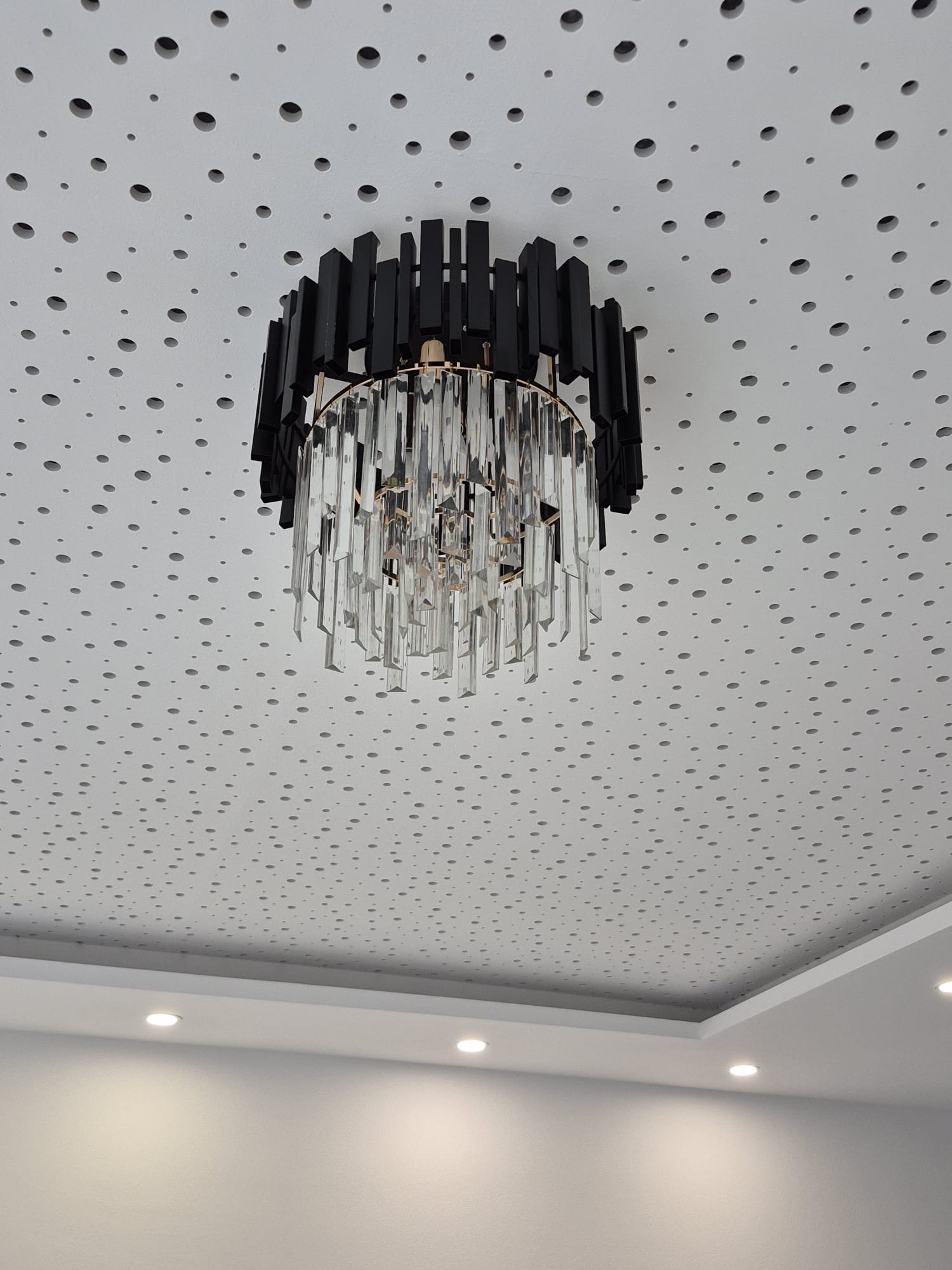 Plafoniera Scaly Black 300 este alegerea perfecta pentru cei care doresc sa adauge un strop de eleganta si modernitate spatiului lor. Cu un design rafinat si contemporan, aceasta plafoniera se integreaza armonios in orice decor, de la cel minimalist la cel industrial. Realizata din materiale de cea mai buna calitate precum cristalul K9 si metalul, plafoniera Scaly Black 300 ofera nu doar un aspect deosebit, ci si durabilitate in timp.