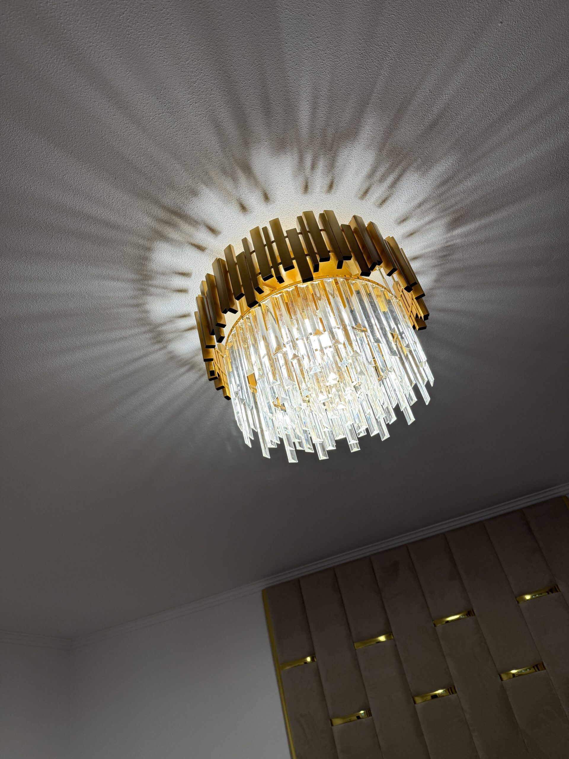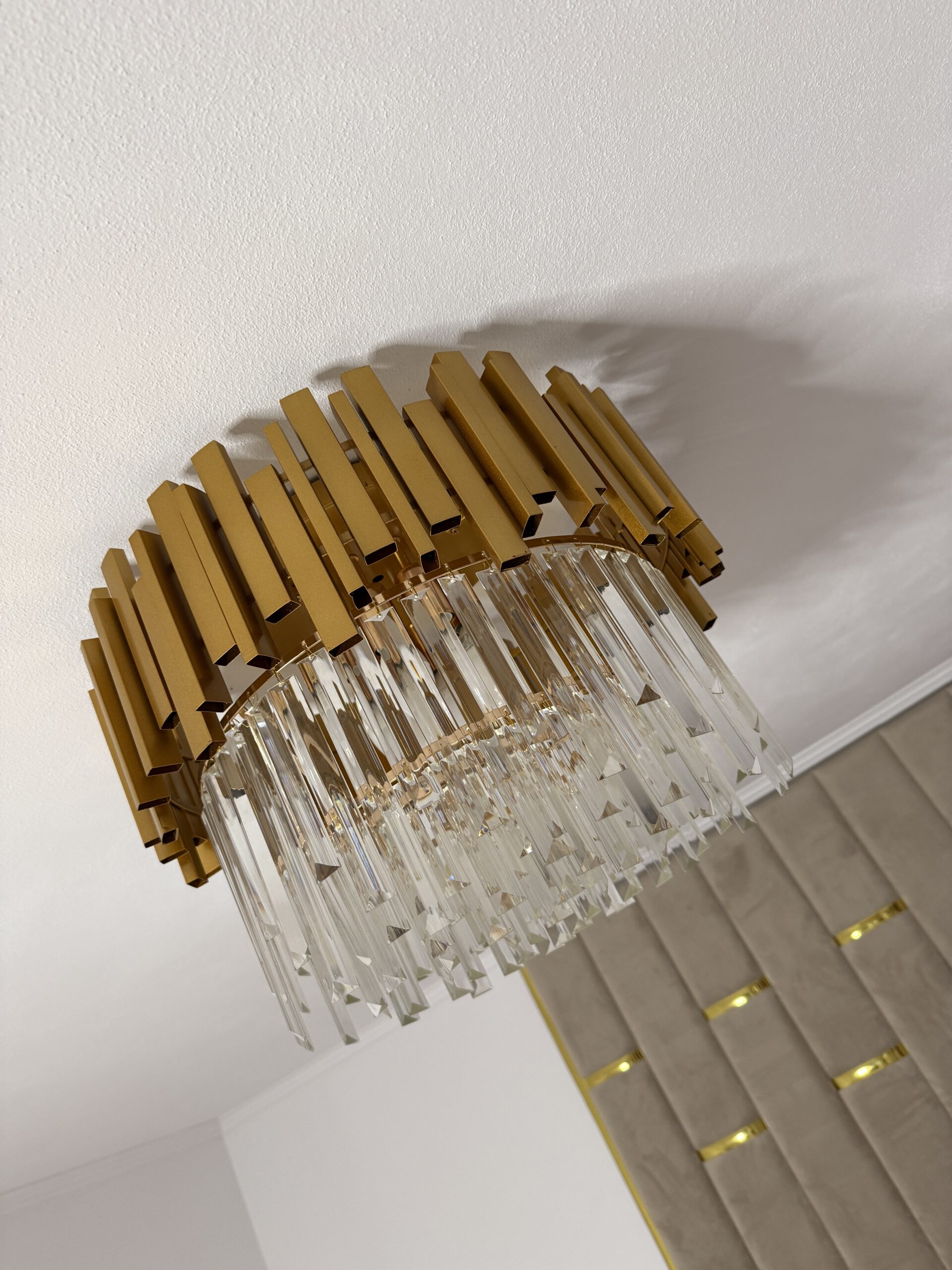 Plafoniera Scaly Gold 500 reprezinta alegerea perfecta pentru cei care doresc sa aduca un strop de eleganta si rafinament in spatiile lor. Acest produs de iluminat de tip plafoniera combina cu maiestrie elemente de design modern cu o atentie deosebita la detalii, oferind astfel nu doar functionalitate, ci si un aspect estetic deosebit. Fabricata din cristal K9 si metal de inalta calitate, plafoniera Scaly Gold 500 aduce o stralucire calda si primitoare, avand o culoare aurie ce se va integra armonios in orice decor interior.